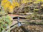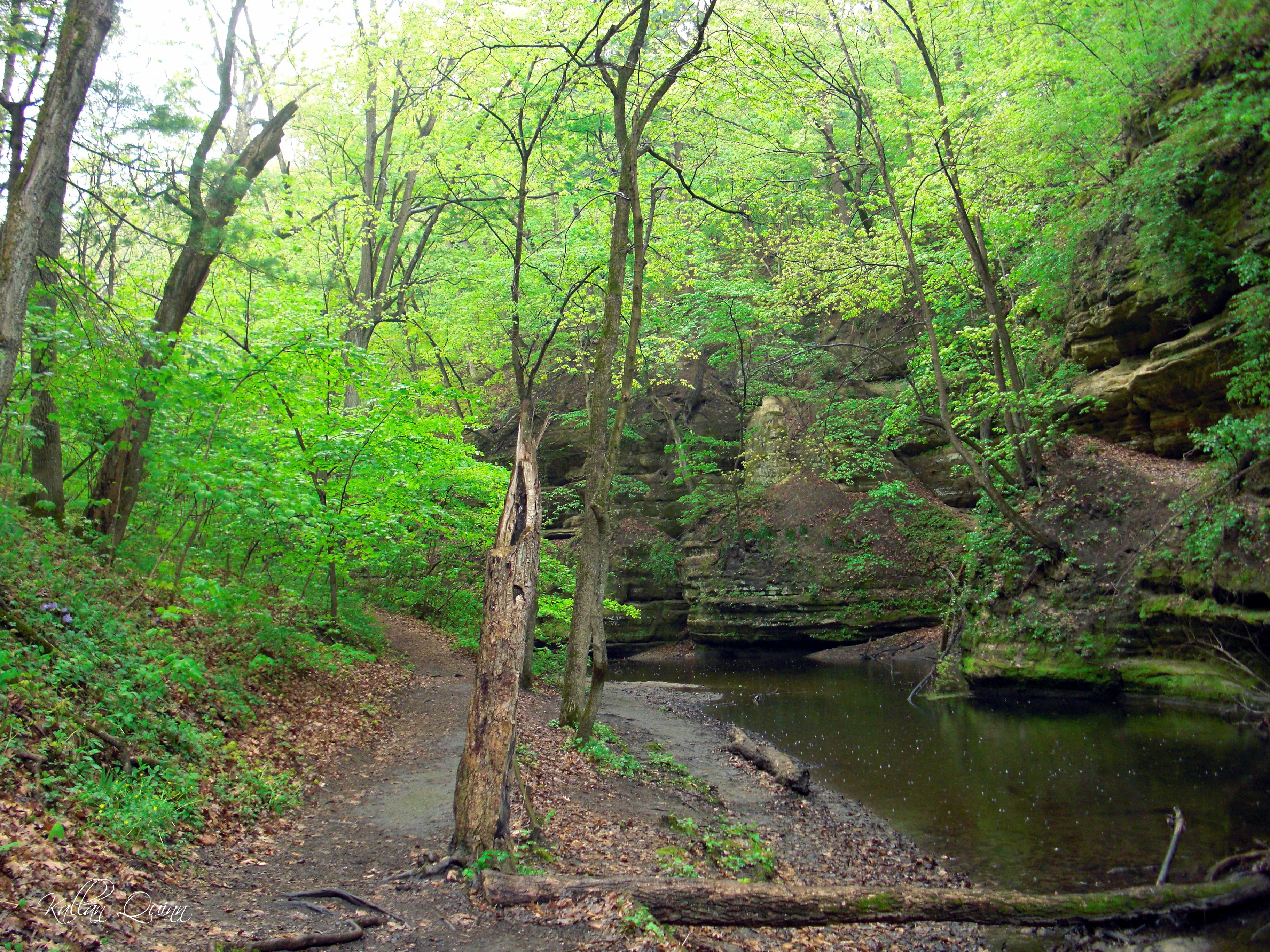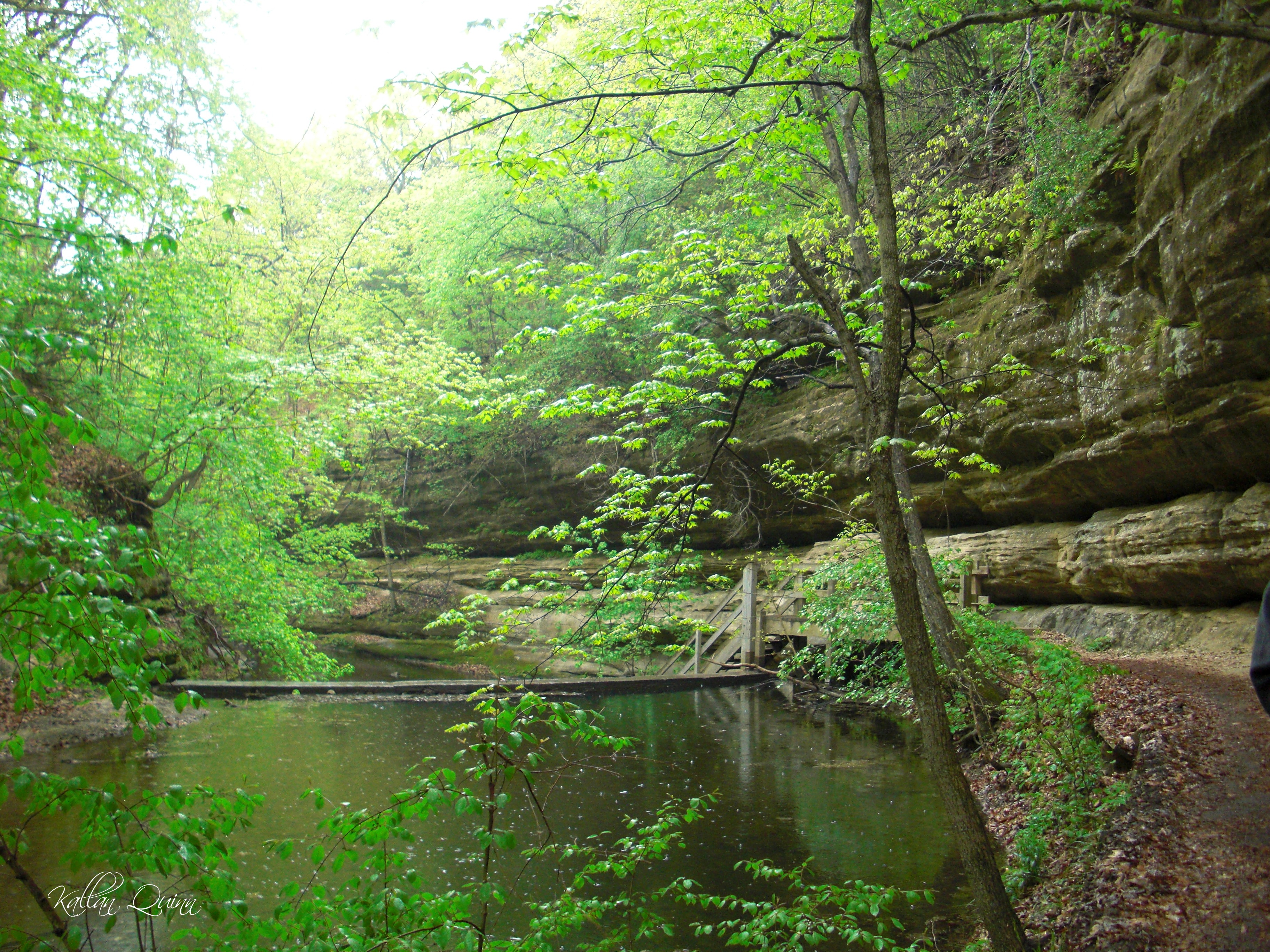 When we went to Starved Rock State Park the first time, our cabin was not ready yet so we decided to take a drive and see what was around. We noticed a sign for Matthiessen State Park so decided to check it out just to kill a bit of time. Wow, was I impressed at what was waiting for us at the bottom of the stairs! It is what they call the Dells Area and it is formed between Matthiessen lake and the Vermillion River. We hiked the Upper Dells and it was so amazing! The trail basically winds along and through a creek leading you past small waterfalls, across stepping stones and through the creek all while the sandstone rocks are towering above you on each side. The trail leads back to Lake Falls which is well worth the hike.