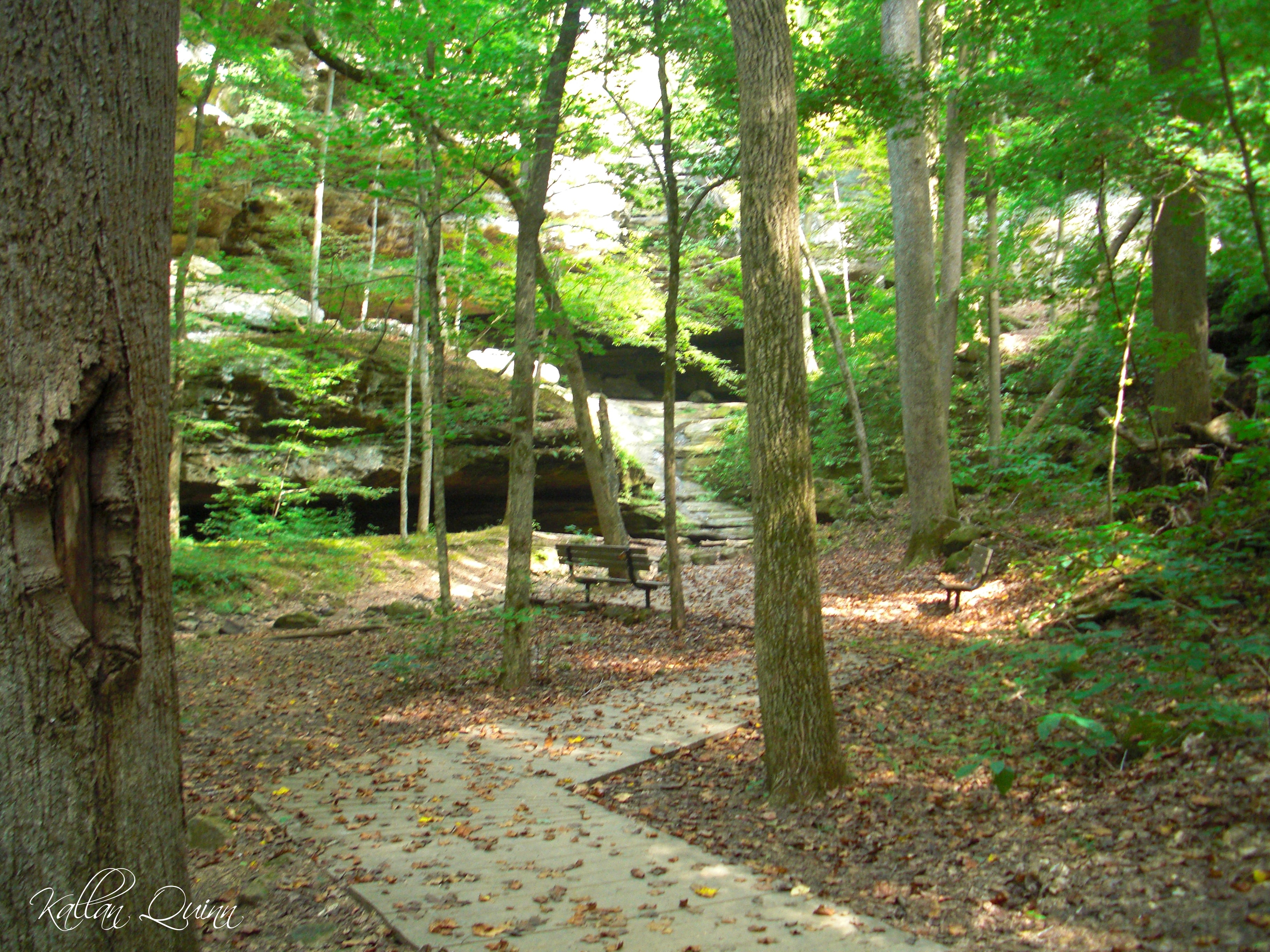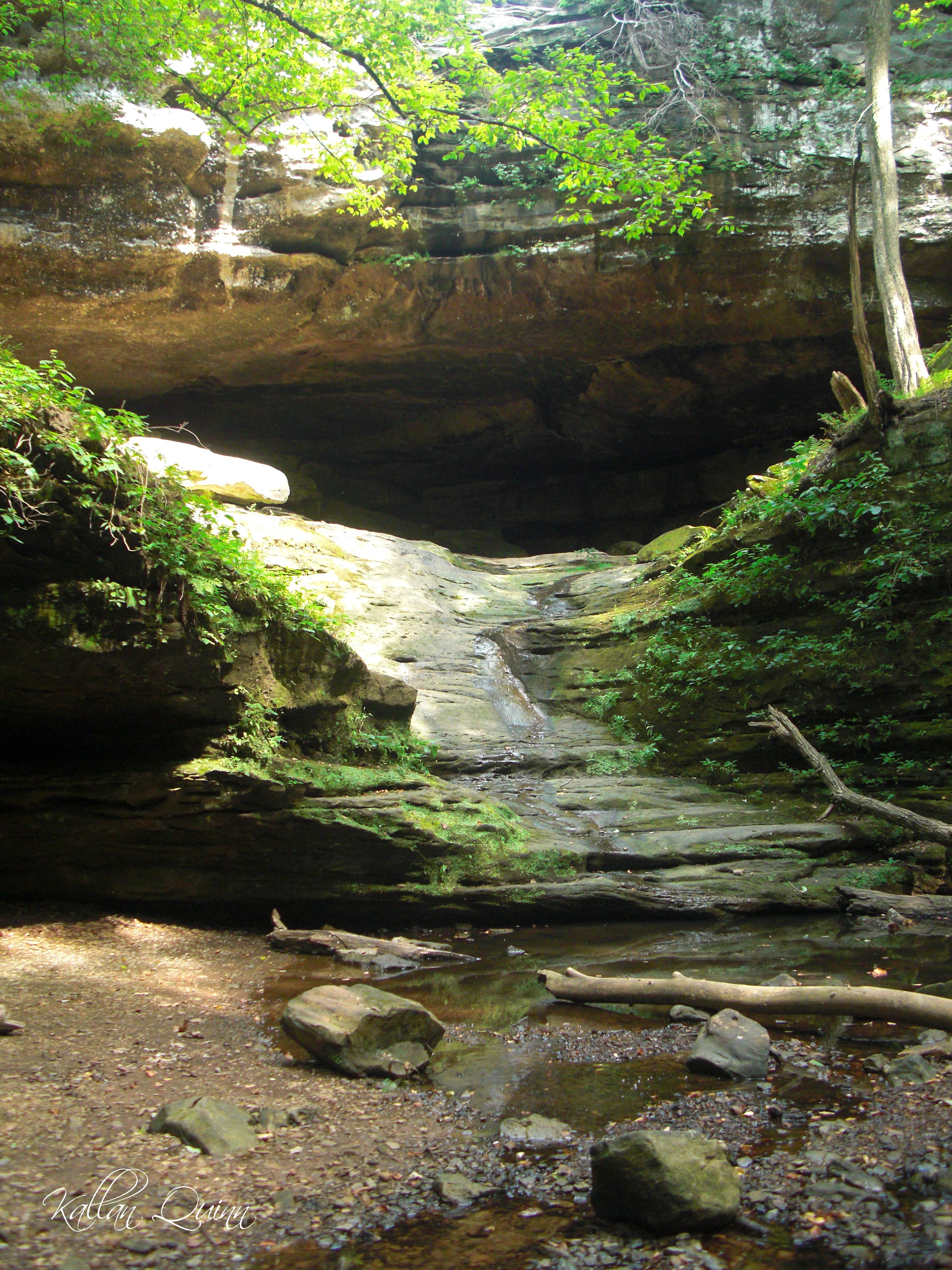 While exploring the Shawnee National Forest, we stopped at Ferne Clyffe State Park near Goreville, Illinois. We did not have much time to spend at this park, so we walked the .75 mile Big Rocky Hollow trail back to the base of the waterfall.