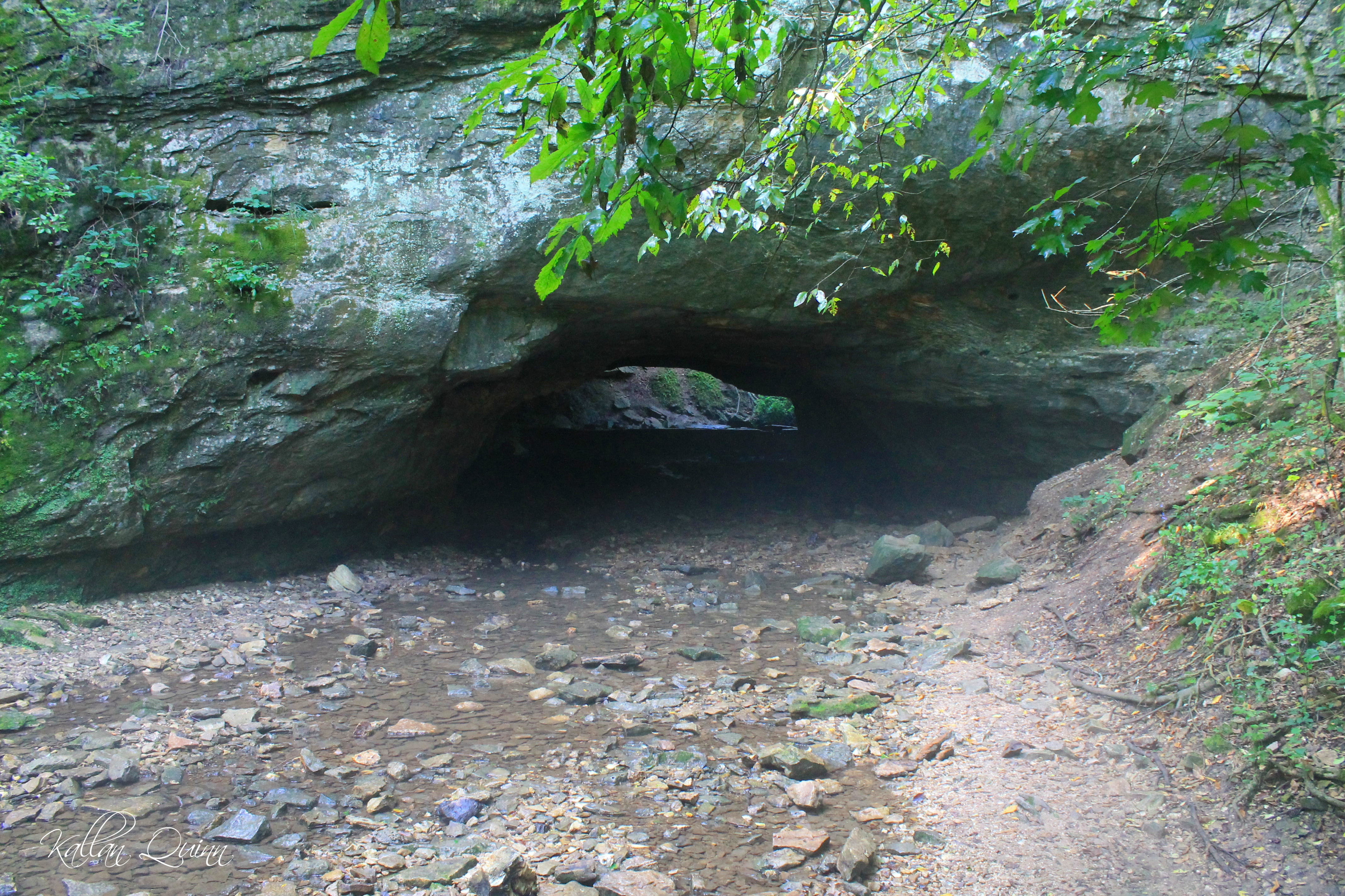 On our way home along Interstate 70, just outside of Danville, is Graham Cave State Park so we decided to stop and check it out. This park is situated along the Loutre River just off the interstate. There are several trails here, but most of them lead directly to the cave. From the parking lot, there is a paved trail that leads directly up to the cave, but we took the natural trail to the right of the parking area. This is a short .3 mile trail which has a couple creek crossings and even a seasonal waterfall. Once up the hill, you get your first peek at the impressive cave. The cave is low and feels like it stretches forever. You can walk into the cave for few feet under the overhang, but it is closed off to preserve archeological evidence.