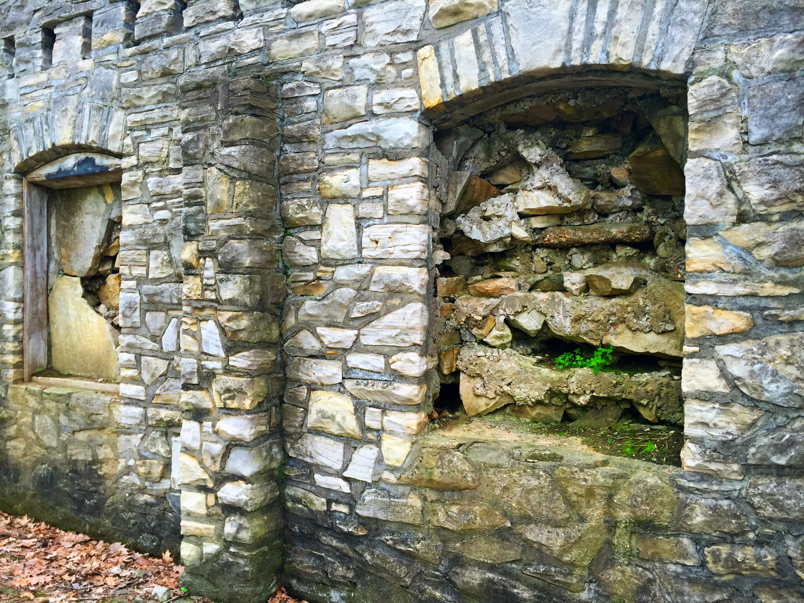 The trail will turn to the right and begin to follow the Missouri River. During the 1930’s, the park was a summer retreat for many people. The Works Progress Administration built several buildings and other structures to attract visitors. First Lady Elanor Roosevelt even visited the site in 1936. The first stone ruin that you will encounter is the old stone fireplace built into the side of the bluff.