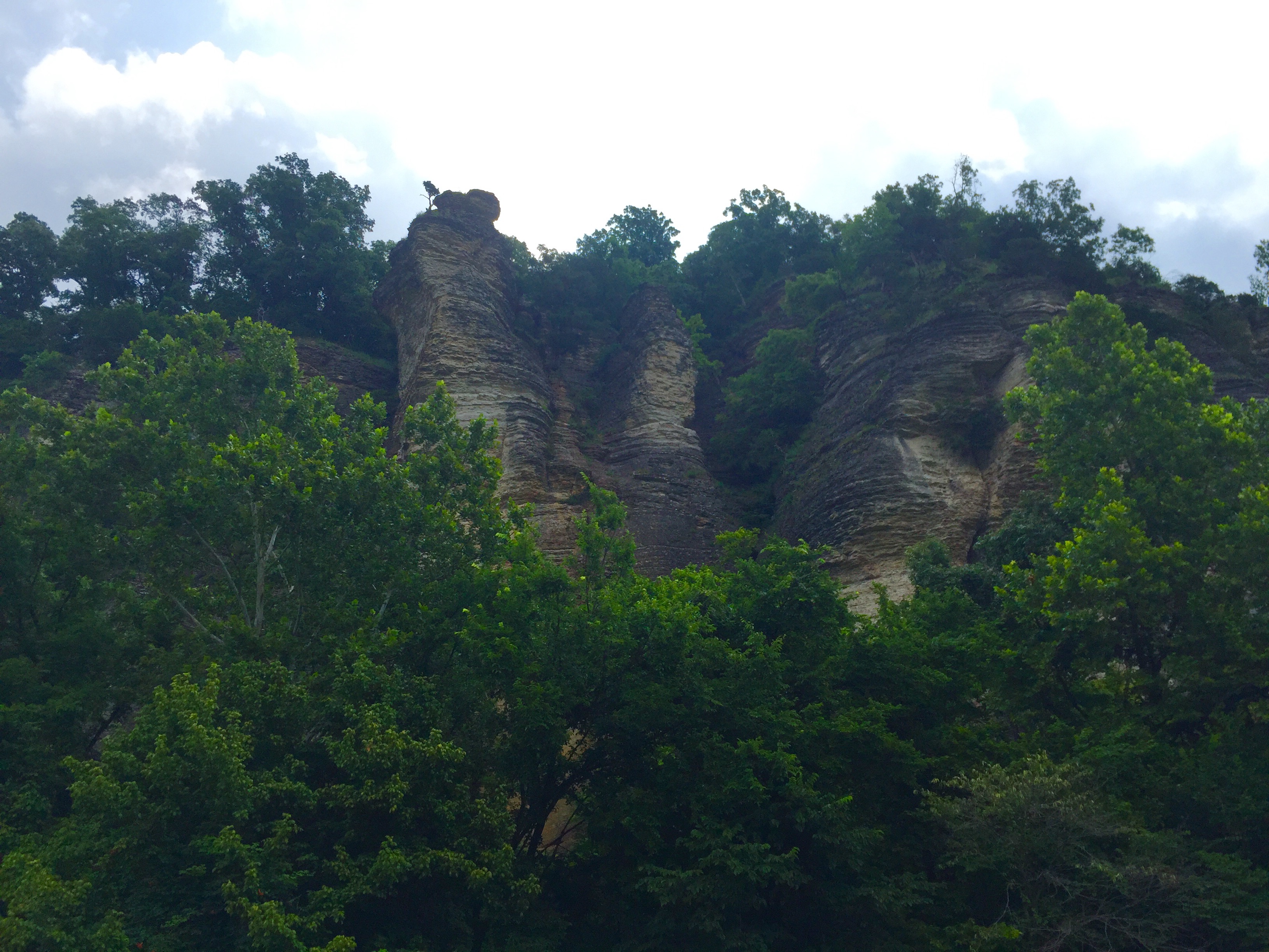 Just before the statue, there was a sign for a scenic overlook. We headed up the bluffs and just behind the Randolph County Courthouse is a small overlook.