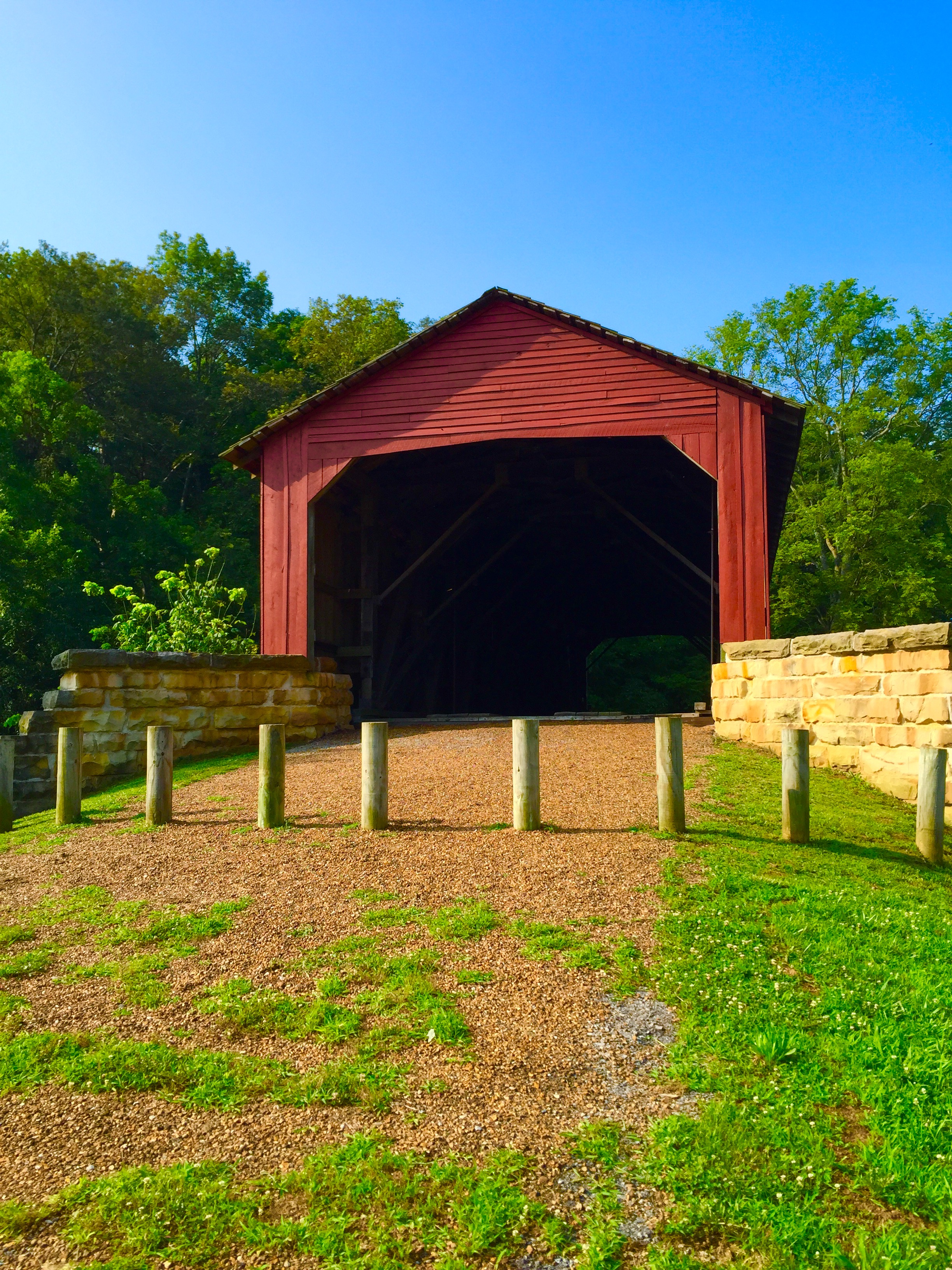 My friends and I set out on a drive to see some sights In Southern Illinois and Missouri. In general, we followed along the Mississippi River. We headed south towards Chester, Illinois. While driving along Route 150, about 10 minutes outside of Chester, there is a sign for a historical marker. Just off the road sits Mary’s River Covered Bridge.