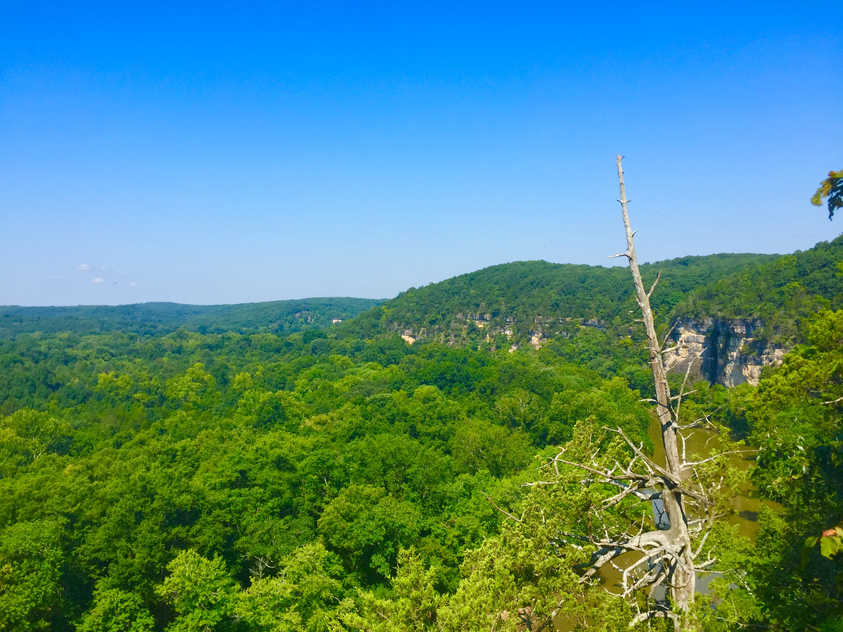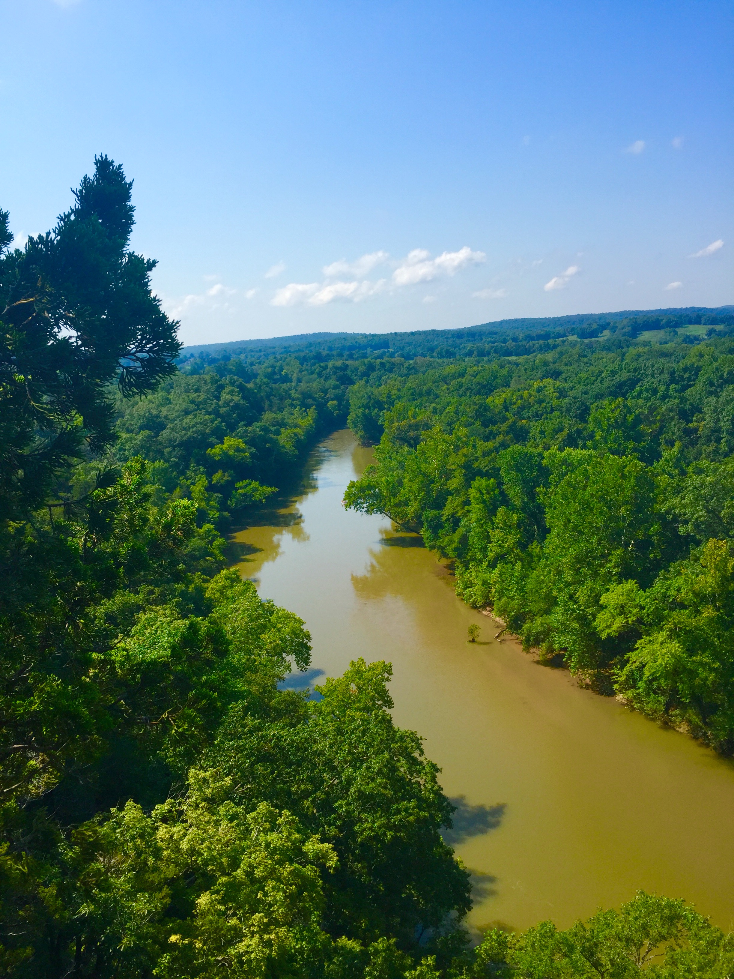 From here, you get an expansive view. The river cuts through the land below you while the bluffs rise to your right. The Meramec River flows 218 miles, starting in Salem, Missouri and finally emptying into the Mississippi River. Towering at over 200 feet tall, Vilander Bluff is the highest bluff on the Meramec River.