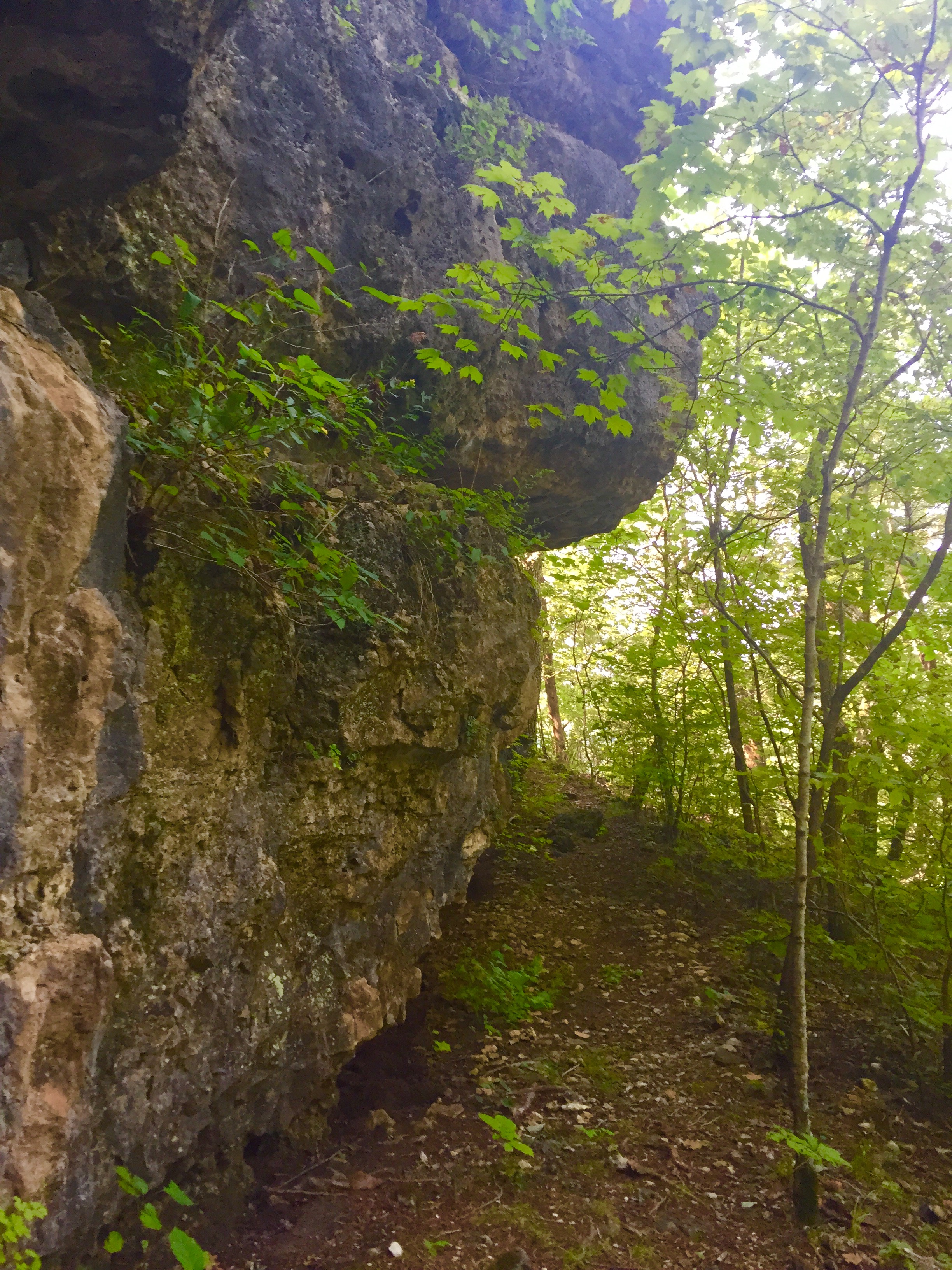 It is important to note that if you just hike this trail and stay on the trail, you will not see the bluffs. Luckily, a guy in our group was able to find the bluffs. About half way through the trail, there is a bench. From the bench, the bluffs are downhill and slightly to the right I believe. I am pretty good with directions, but I was all turned around =) Once you get closer to the edge, there will be a faint trail that hugs a bluff wall and then opens up to an overlook.