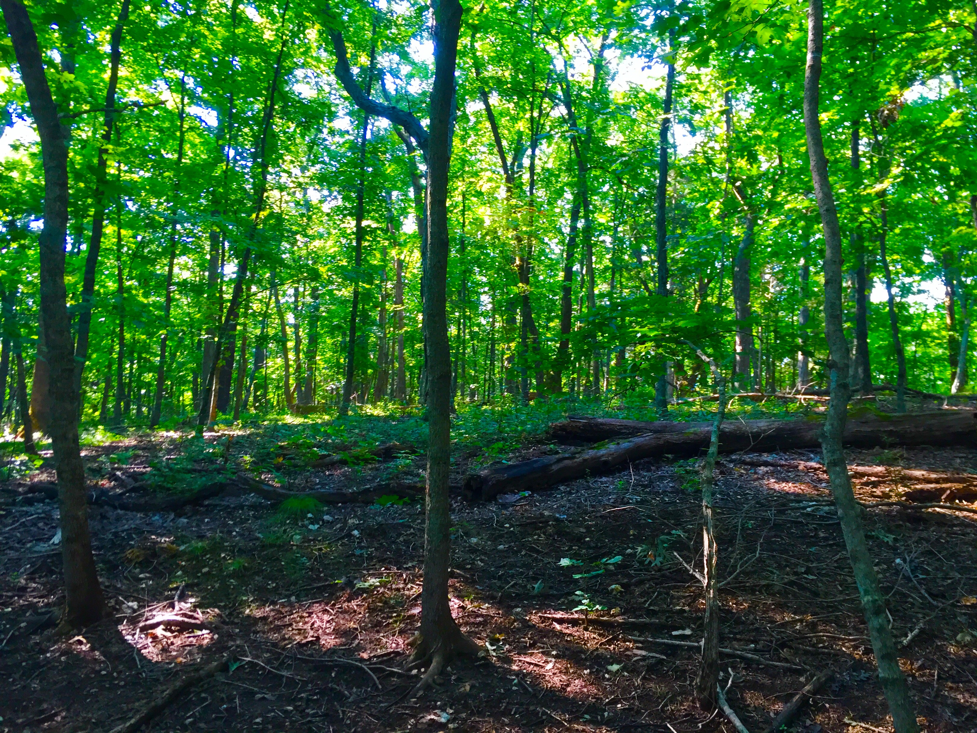 The trail starts off from a small parking lot. The 1.25 mile trail is a lollipop style where a short spur leads to a loop.The trail winds its’ way through the woods and gently climbs uphill.