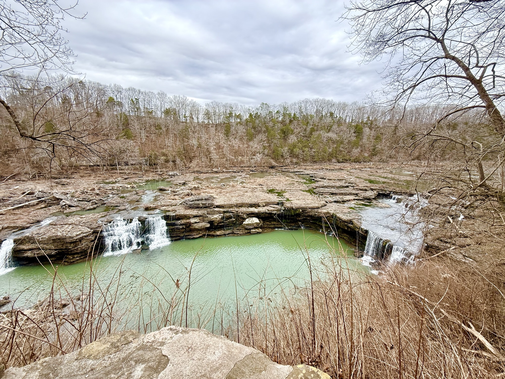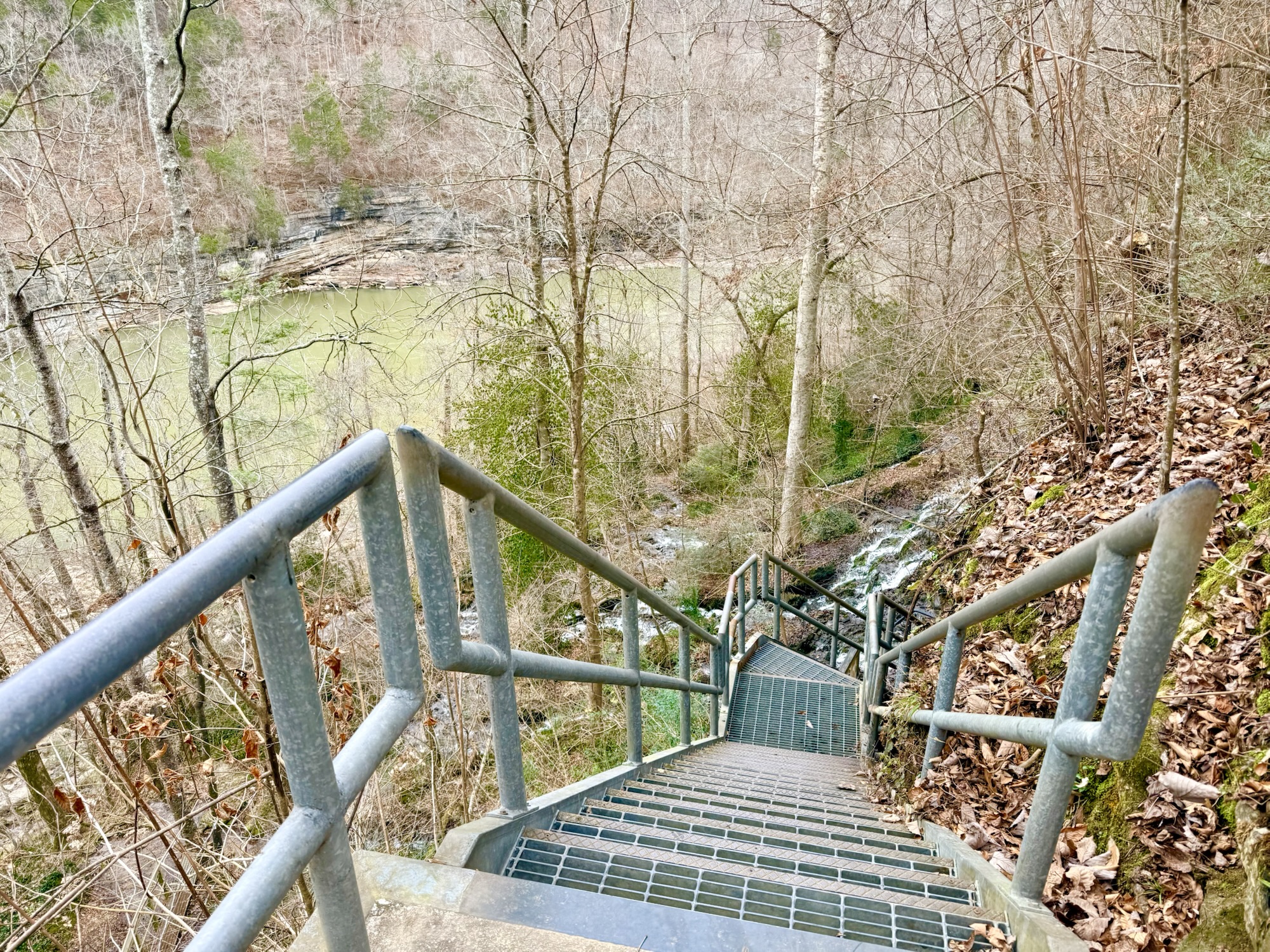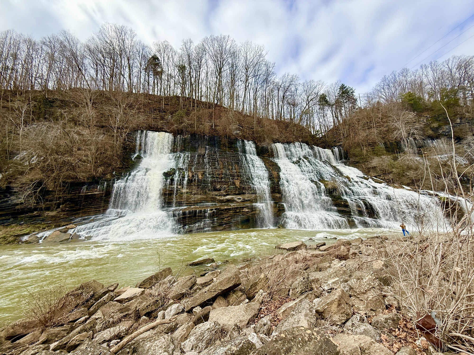 This amazing state park is located about an hour and a half southeast of Nashville. The Caney Fork River cuts through this park creating a rocky gorge. First, we explore the north side of the park. We parked and headed down to the Big Falls Observation Area. The Big Falls are so impressive! Water pours out from the gorge walls creating some of the largest waterfalls I have ever seen.