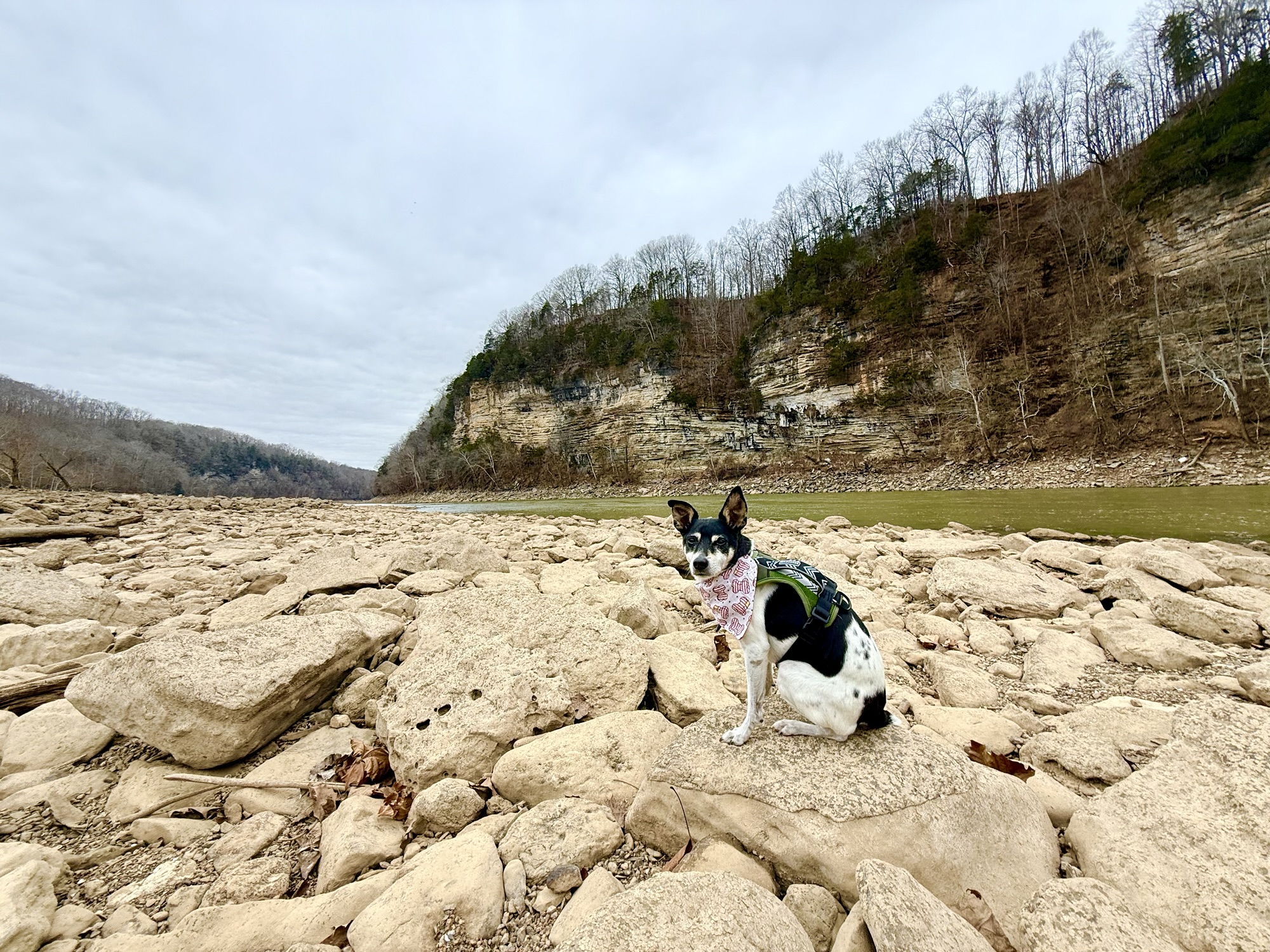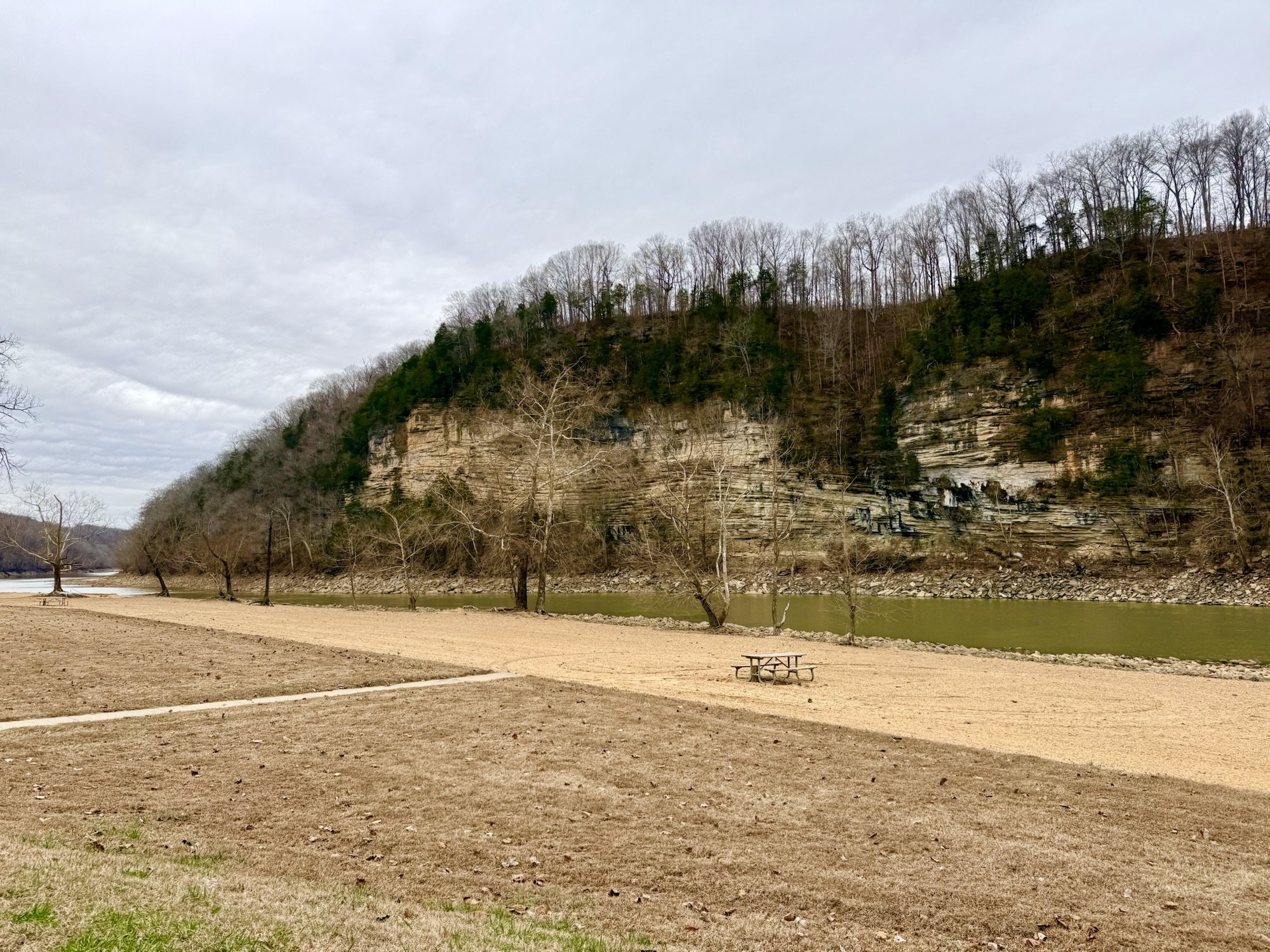 We also drove to the beach area which is a part of the park that I had not visited before. While it was completely empty while we were there since it was winter, I can just imagine this place being an awesome spot to hang out during the summer months. The river is calmer and the bluffs tower across the river.
