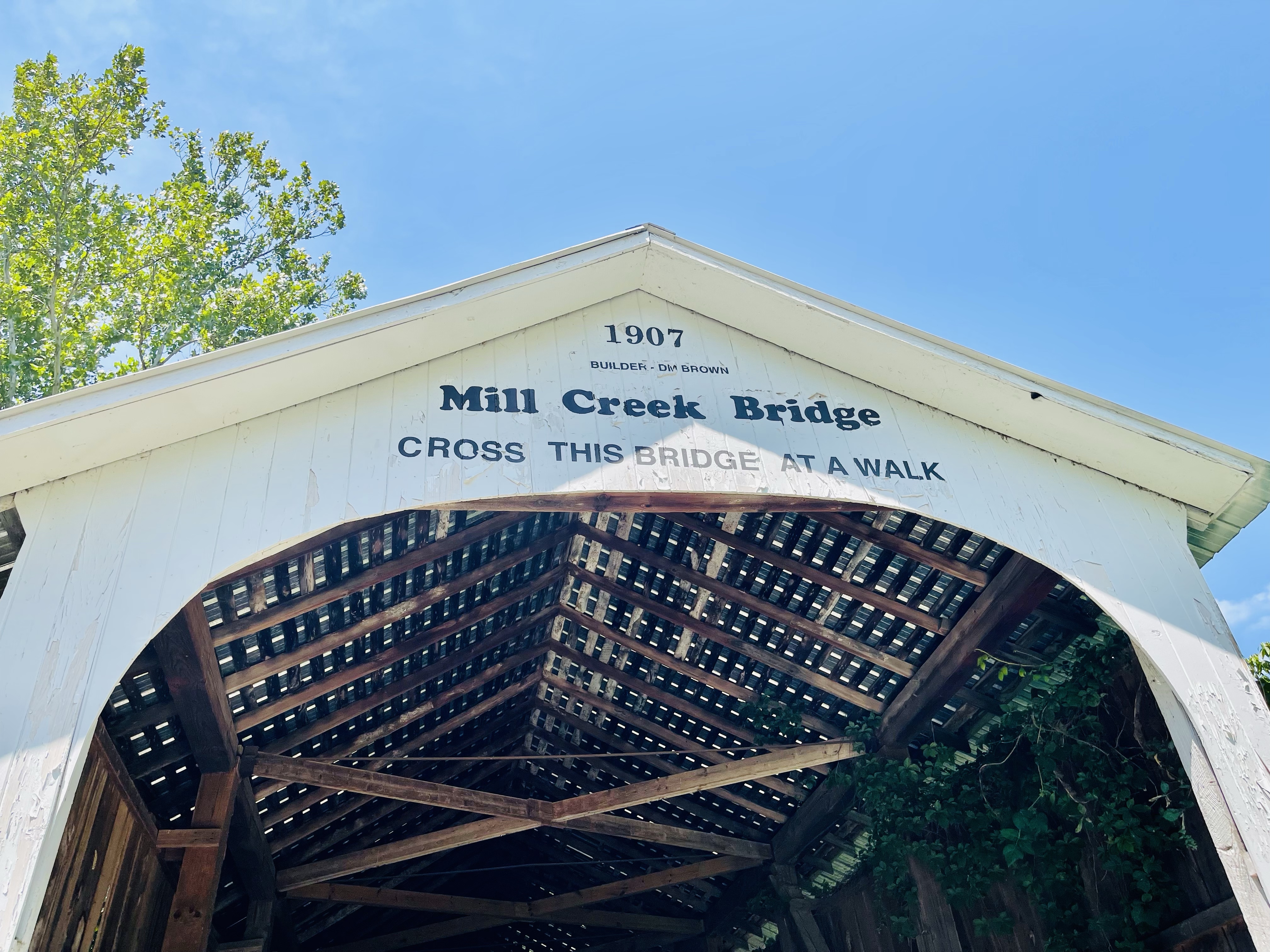 Crossing Rush Creek, this covered bridge was built in 1904. We also did silly poses in front of each bridge…as shown below 😉