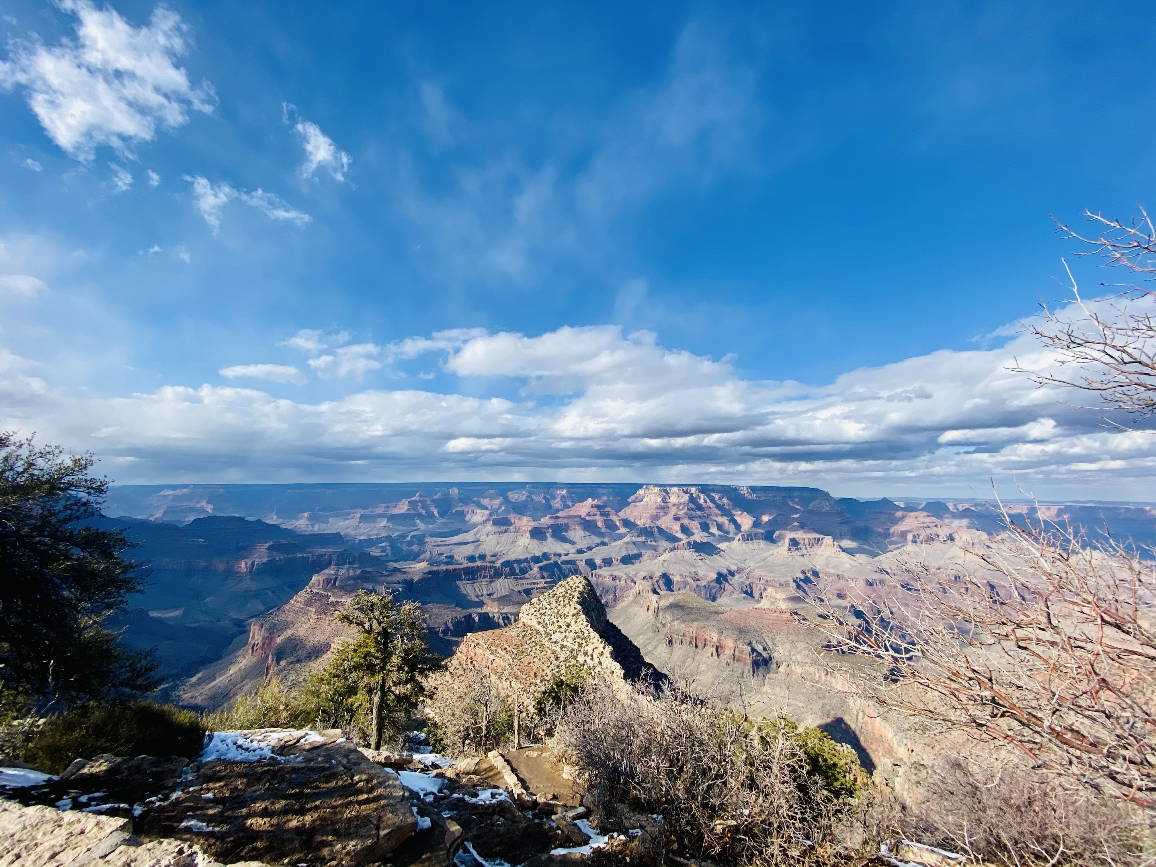 We were supposed to stay the night at the Yavapuri Lodge, but there was an approaching snow storm which was expected to bring several inches of snow to the Grand Canyon and Flagstaff which was the route we needed to take home so we had to change our plans (Planned Spontaneity at its best!) and decided to drive home the same night. Just the previous day, Interstate 40 was shut down due to snow and people were trapped in their cars for over 8 hours so we didnβt want that to happen to us! The temperature started dropping quickly so we said bye to the Grand Canyon!! It was a spectacular sight!