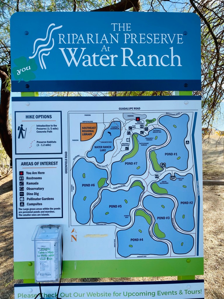 Nestled among the subdivisions is an area set aside for one to experience the beauty of nature. The Riparian Preserve at Water Ranch in Gilbert, Arizona is a bit of peace and tranquility. The 4.5 miles of trails are open from dawn until dusk and it is a perfect place to take a walk.