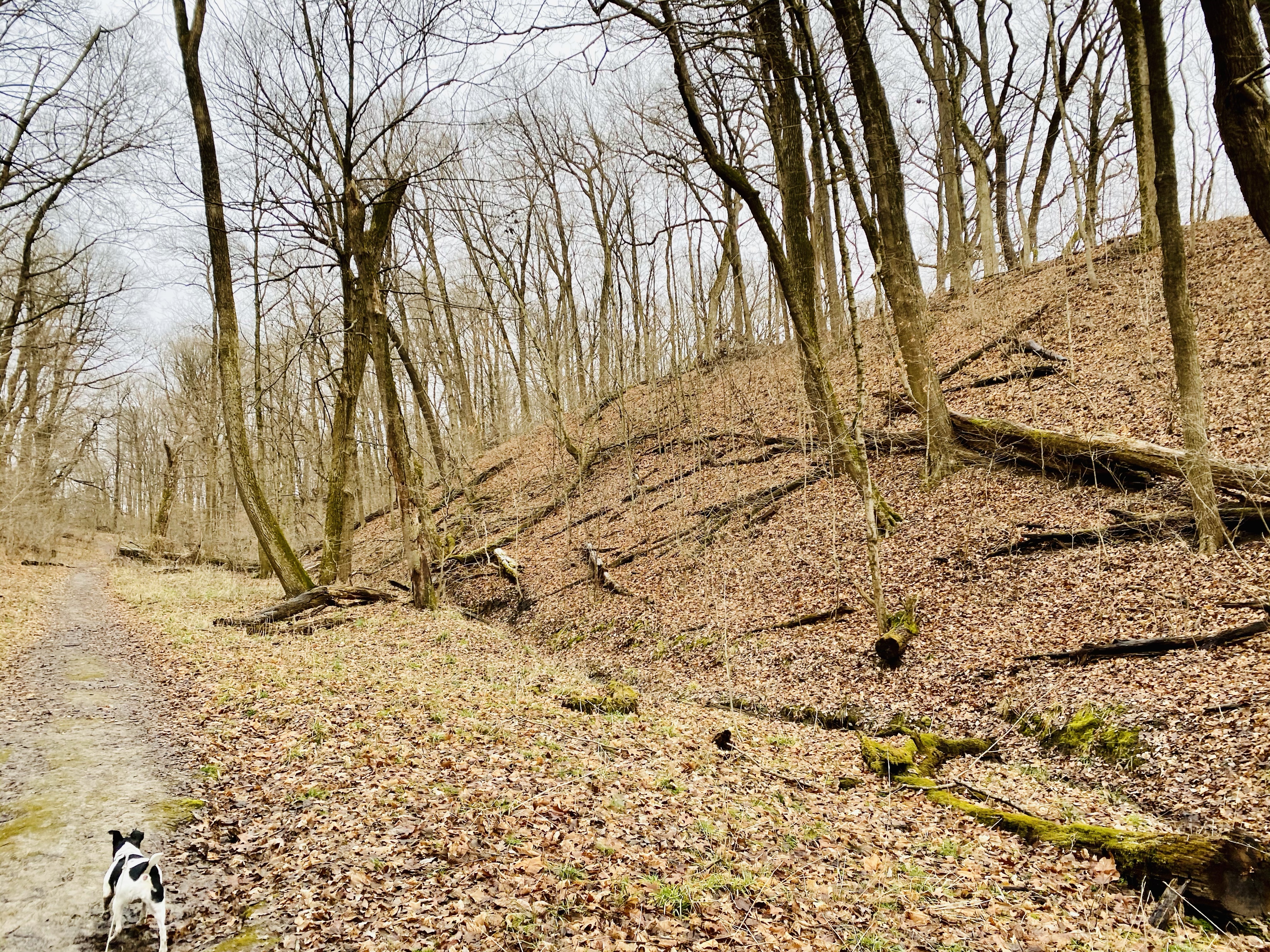 Deep ravines lead into the Cahokia Creek floodplain. There is not a ton of information on this place, but what I did find lists the trail as a 1.7 mile out and back.