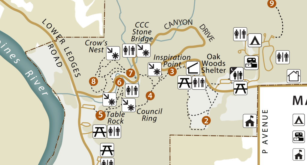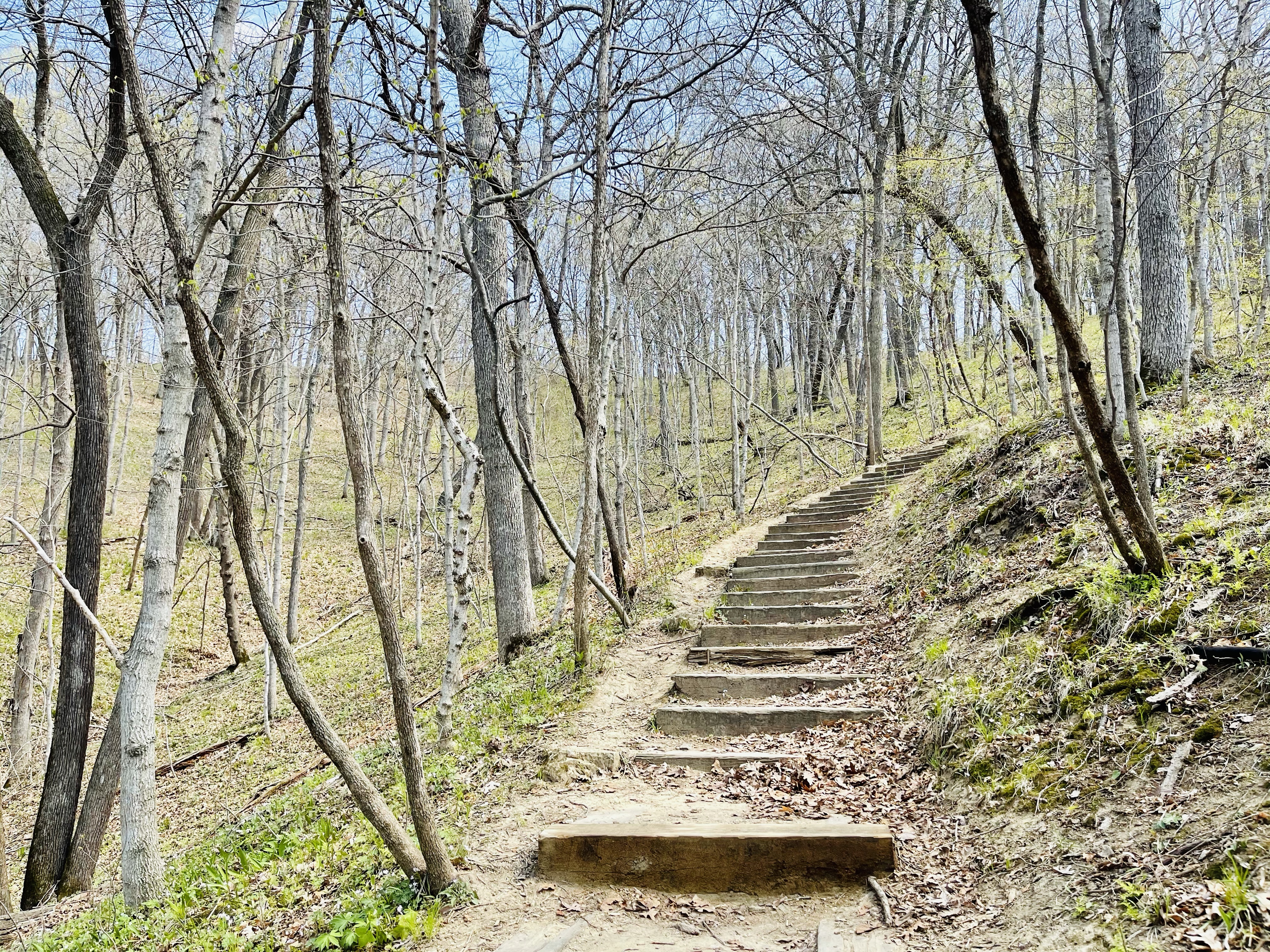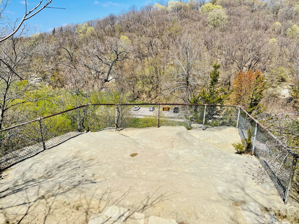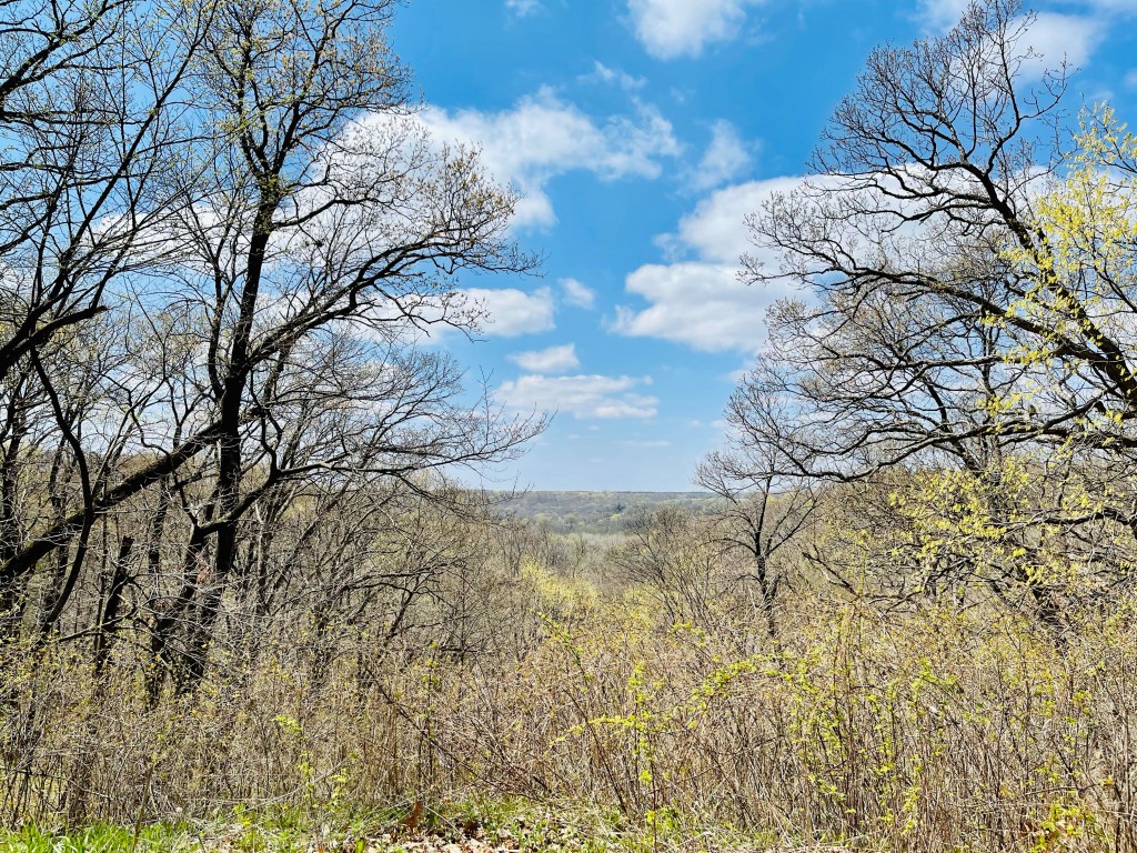 As you enter the park, rolling farm fields give way to a stunning canyon. We first parked by the Oak Woods Shelter and hiked Trail 3. This trail leads along a high ridge line with views of the canyon floor.
