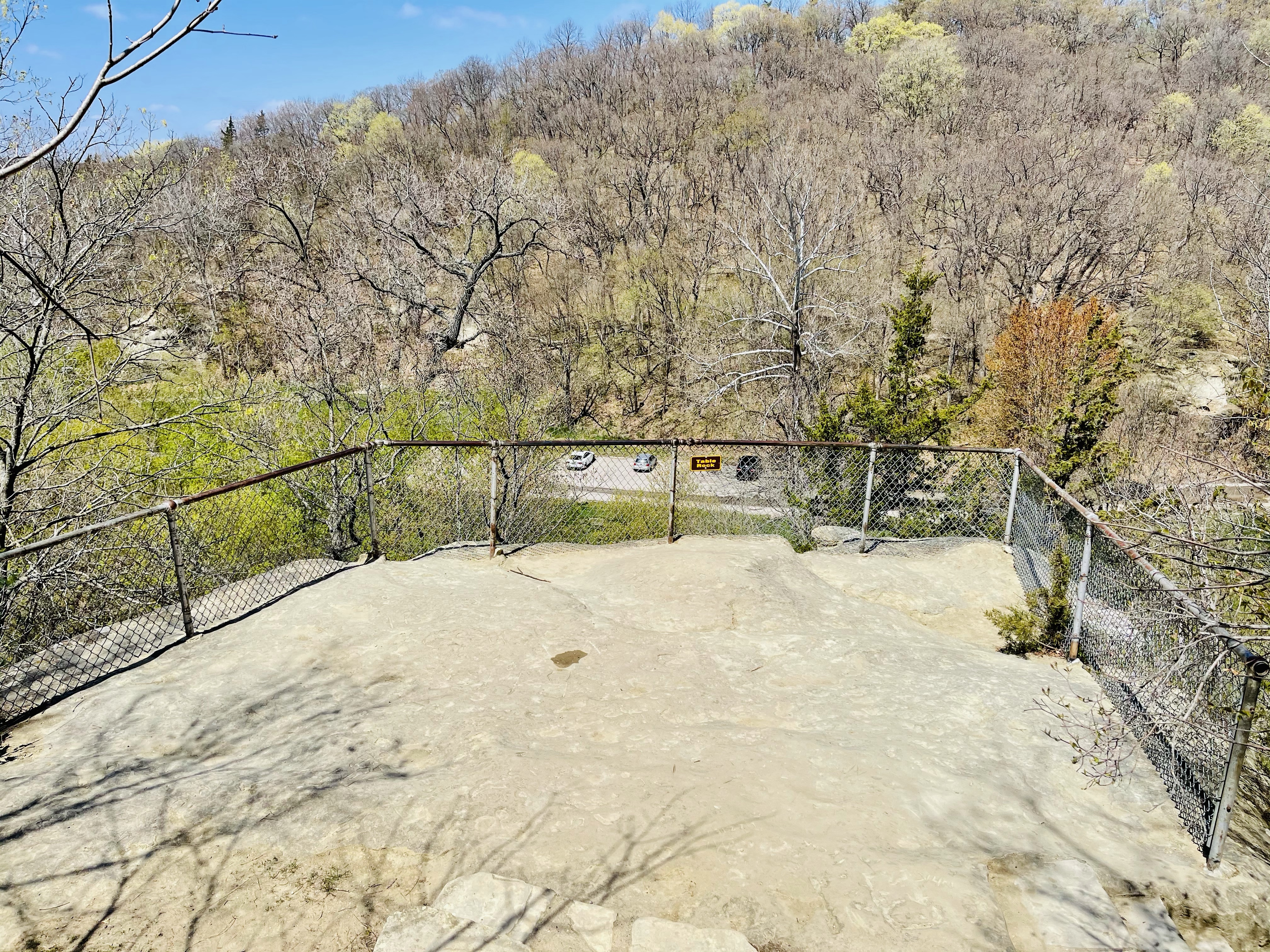 A one-way, winding road leads down into the canyon and follows Pea Creek. This is the main attraction at Ledges State Park. There are several fords along the drive where the shallow creek crosses the road. During heavy rainfall the canyon drive can close due to flooding so plan accordingly. I also read that the drive closes in the winter as well.