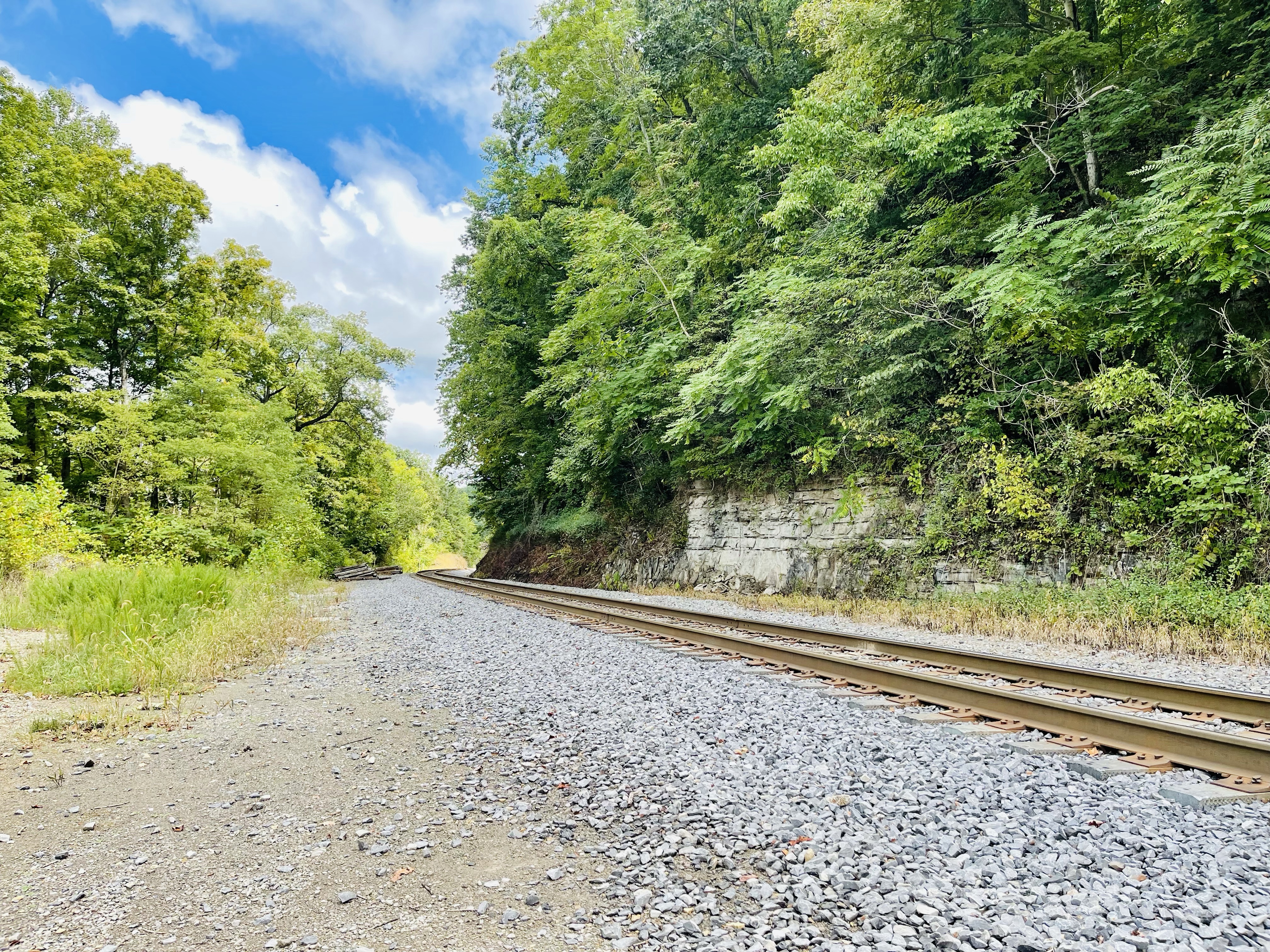 Once at the top, the view is worth it! It feels like you can see forever. The trail crosses over the train tracks and leads deep into the forest.
