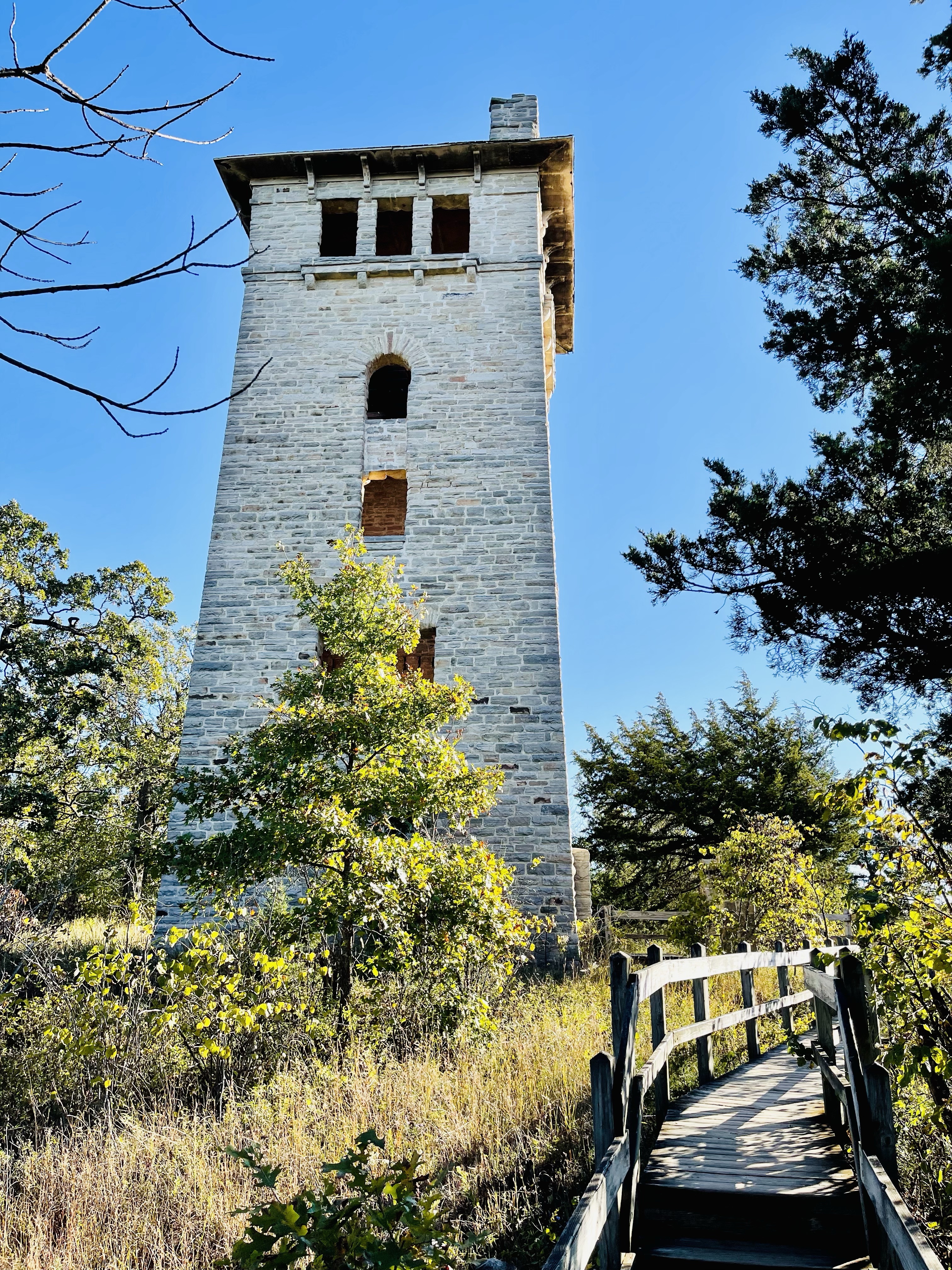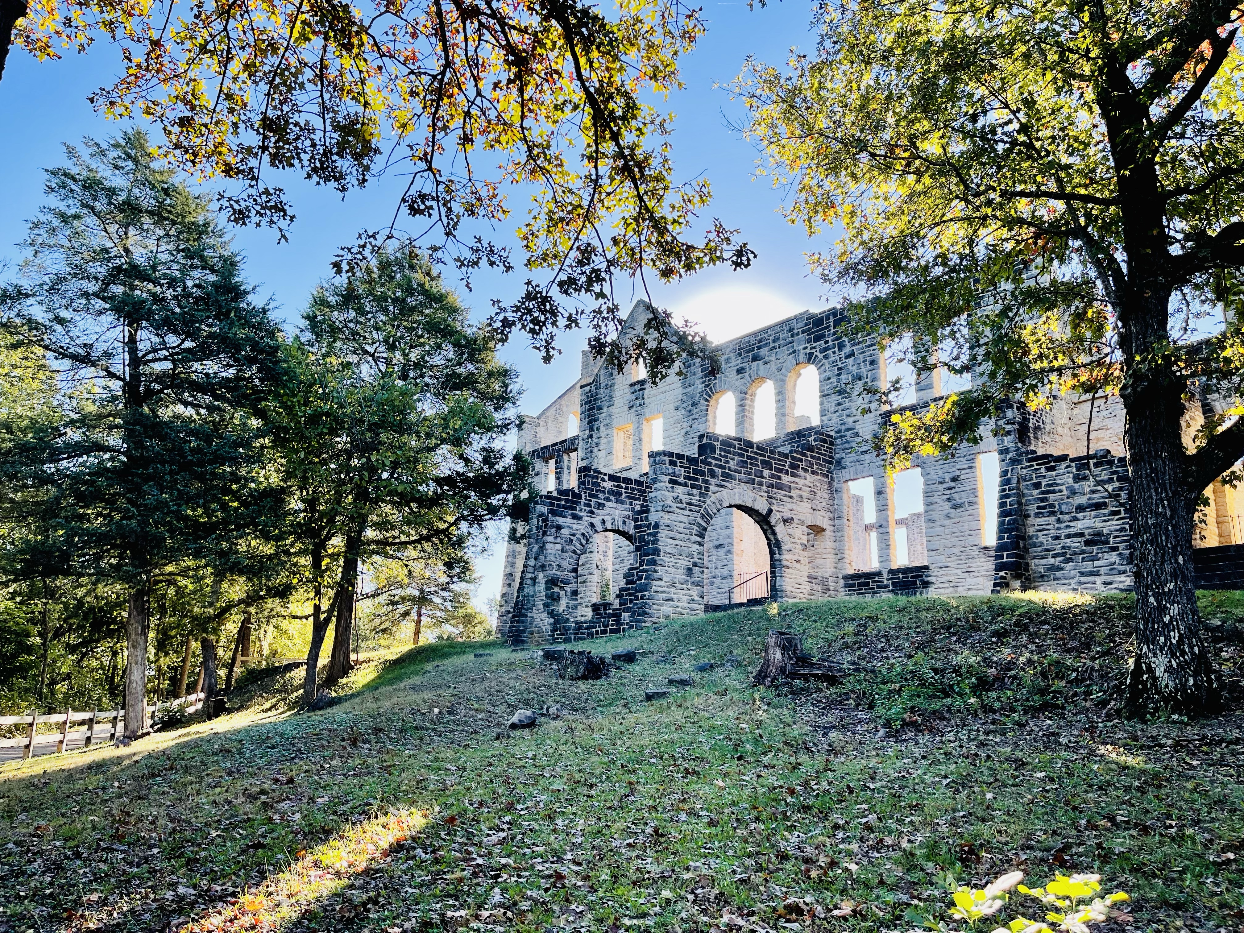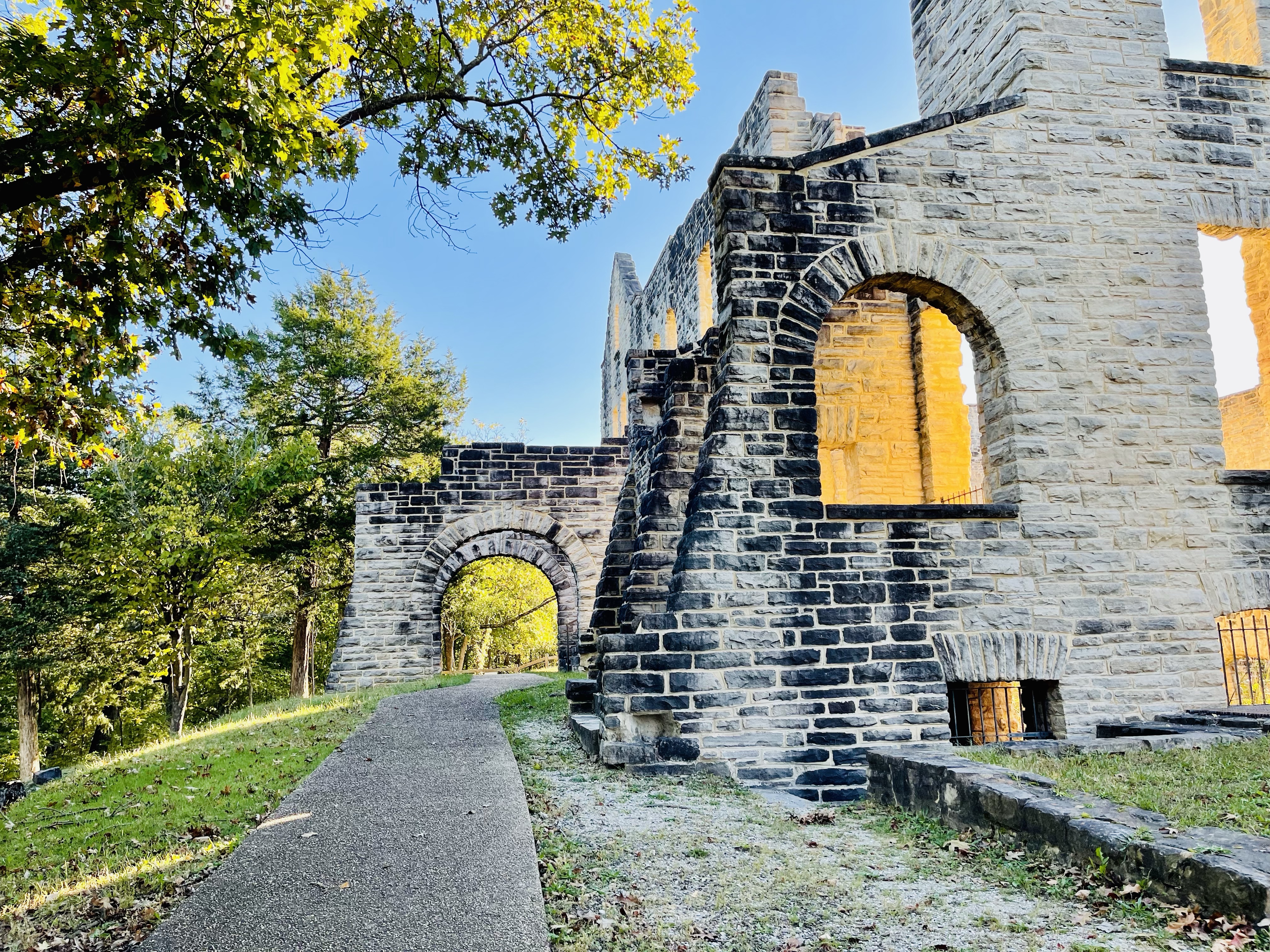 Robert Snyder, a wealthy Kansas City business man, began building the retreat in 1903. After Snyder passed away in an automobile accident, his sons completed the construction in 1922. Years later in 1942, sparks from a chimney fire set the castle ablaze as well as the carriage house so all that remains today are the ruins. This is a pretty remarkable structure within a Missouri State Park.