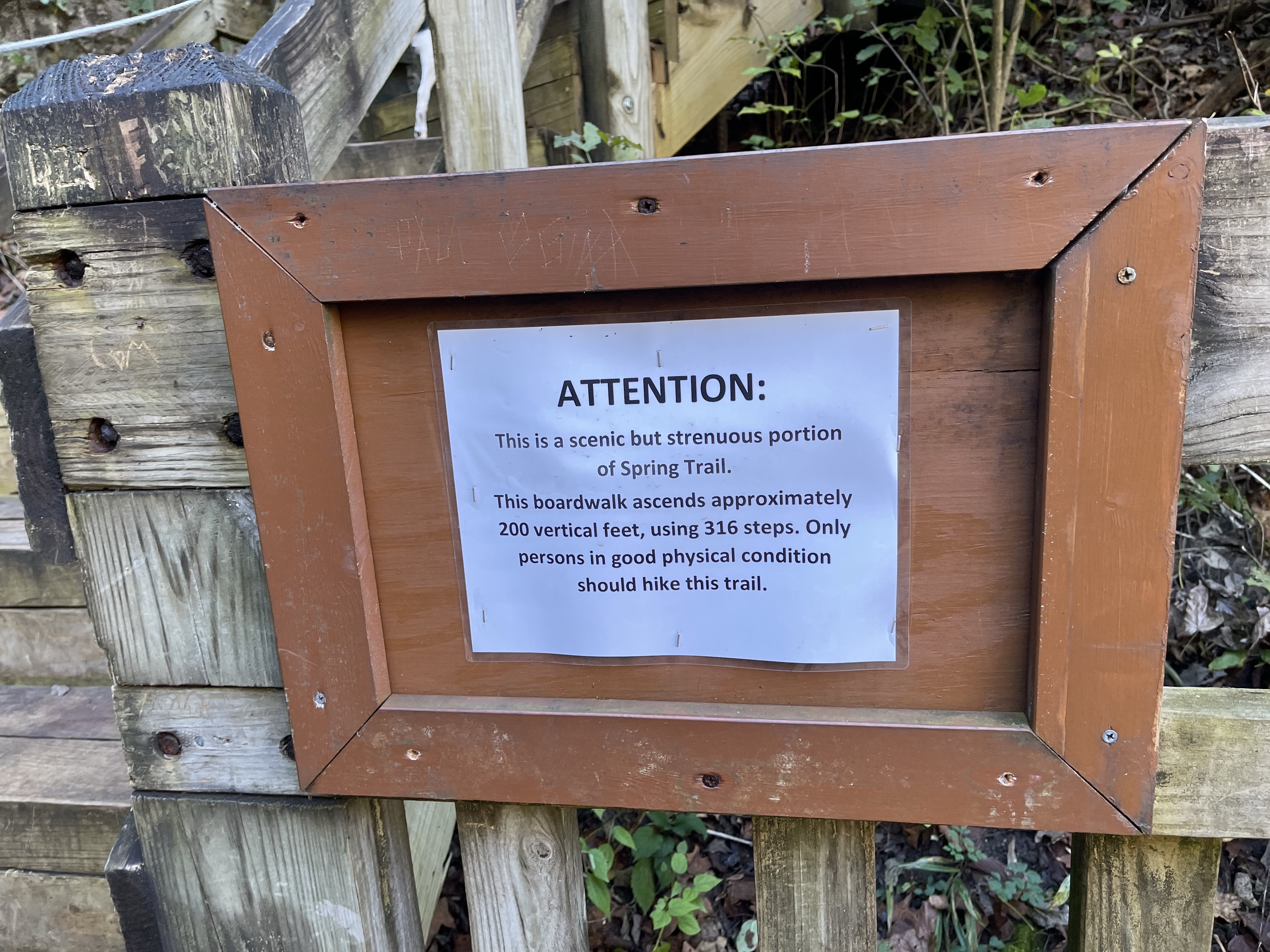 From here, we headed back up to the top of the bluffs. Note the sign below that there are a lot of stairs on this trail!