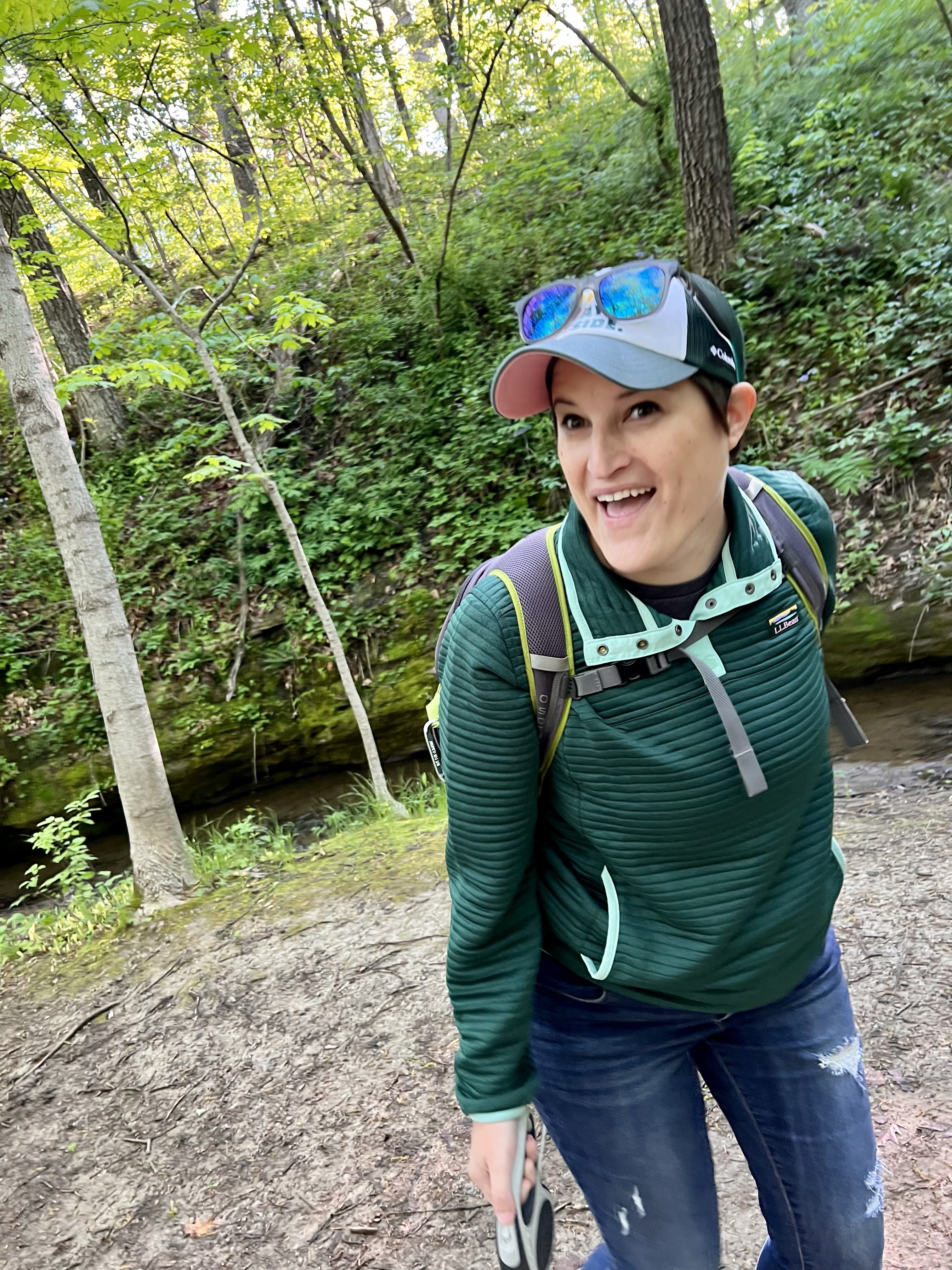 Our final hike at Starved Rock State Park was to Illinois Canyon. This is the first time I have hiked this trail and I loved it! This trail is a bit longer, but it is beautiful. You cross a creek several times so be prepared to get your feet wet a bit! Ellie loved walking in the creek.