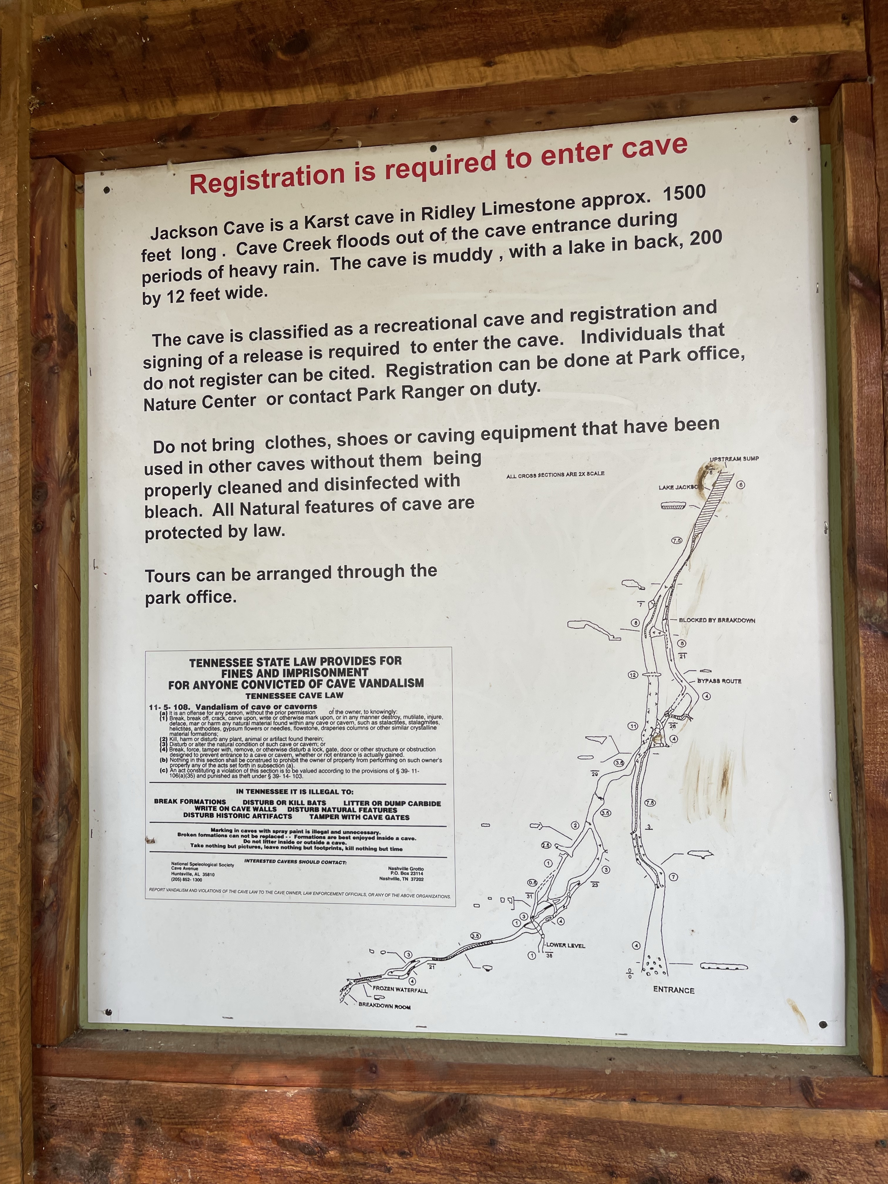 Next, we checked out Jackson Cave which is just to the right of the Nature Center. We didn’t go inside the cave since you have to register and obtain a permit, but just the entrance was impressive! The sign even says there is a lake towards the back of the cave! Note that this area can flood during heavy rains.
