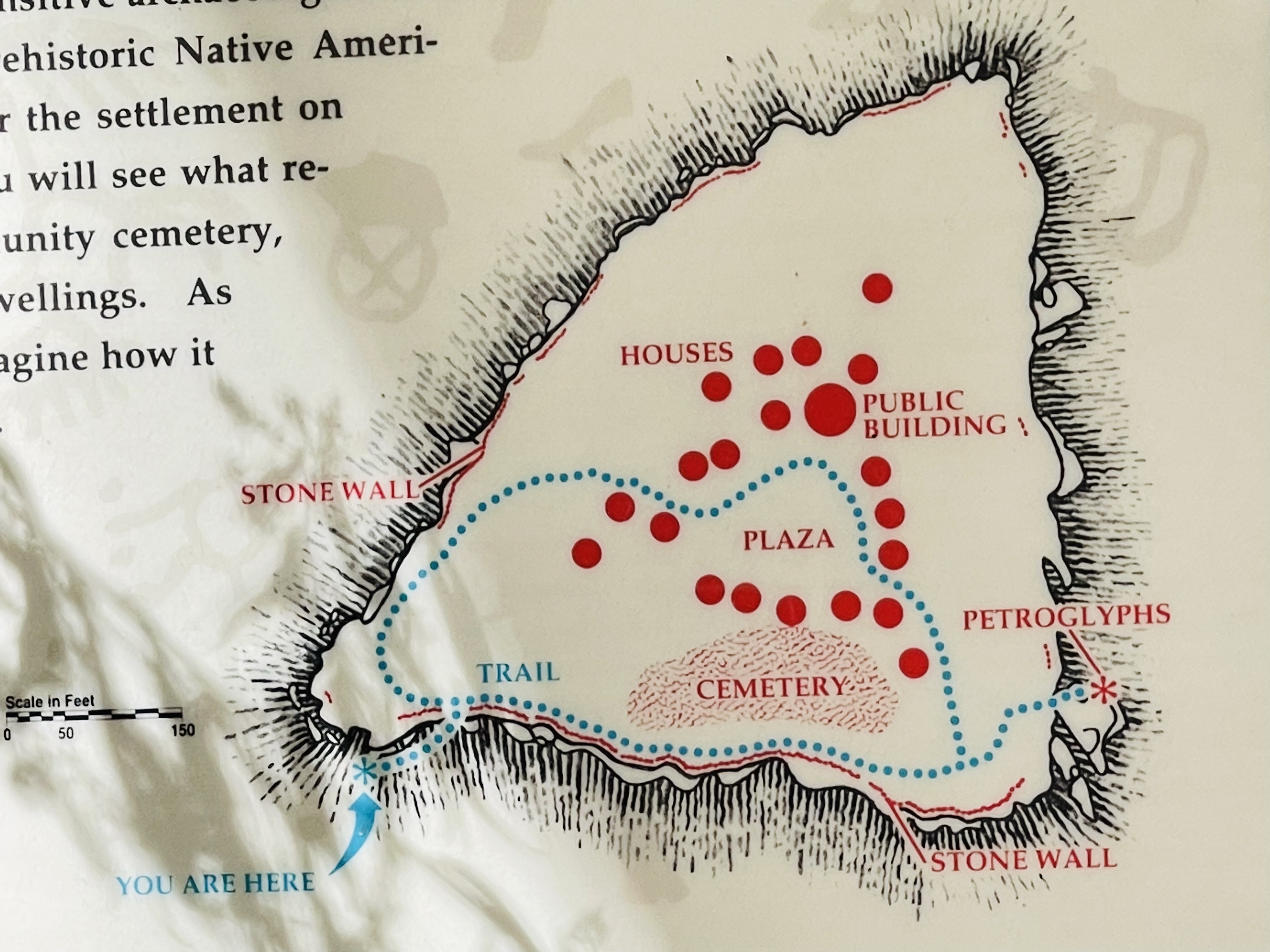 Several prehistoric features are called out along the loop like household indentations and a cemetery.