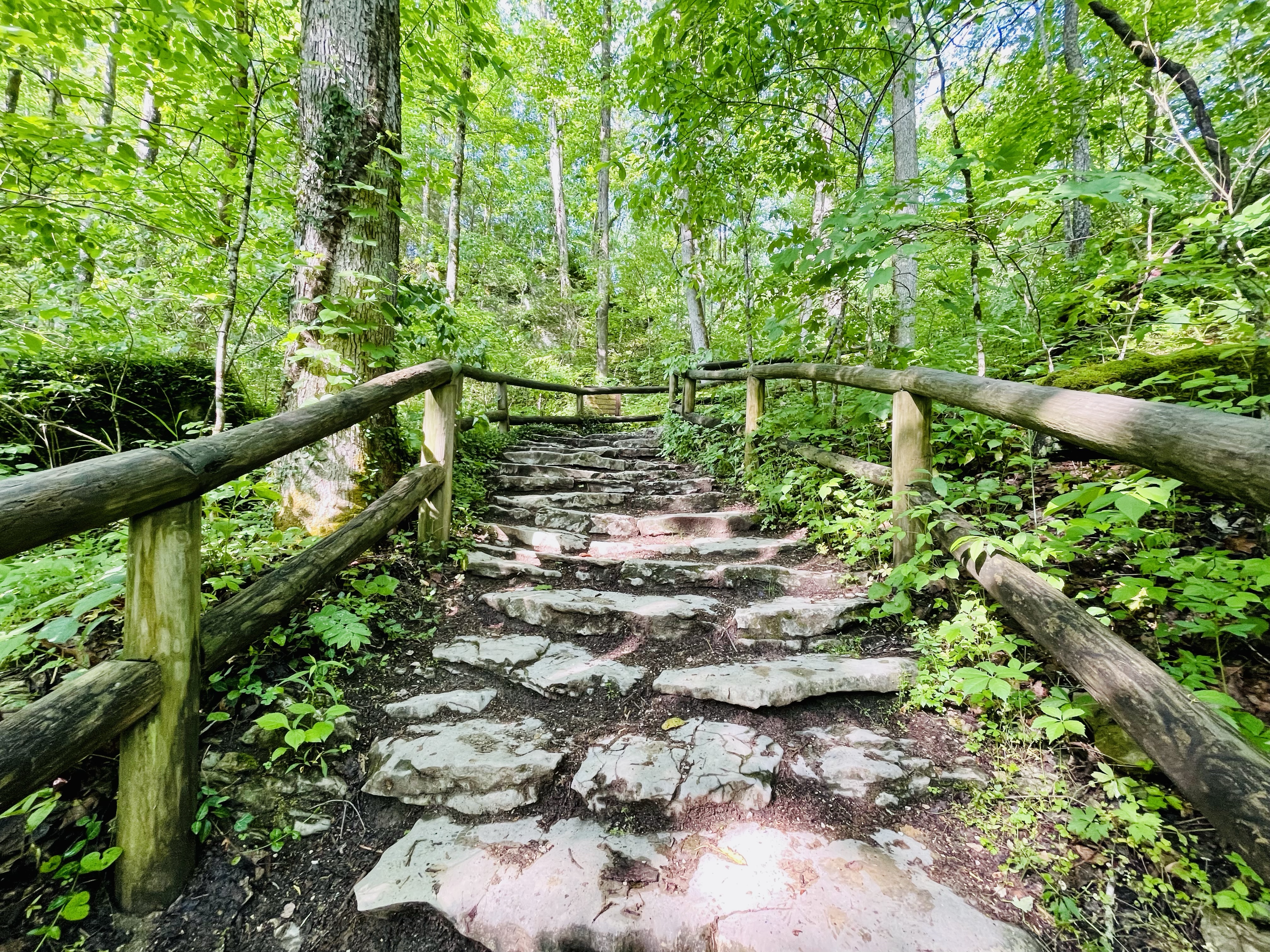 We started our day by parking in the Lodge parking lot and walking behind the Lodge to the start of the Original Trail. This trail was built in the 1890’s by a railroad company. This is the shortest and steepest route to the Natural Bridge. The trail climbs through a lush forest to the base of the Natural Bridge. The arch is IMPRESSIVE!