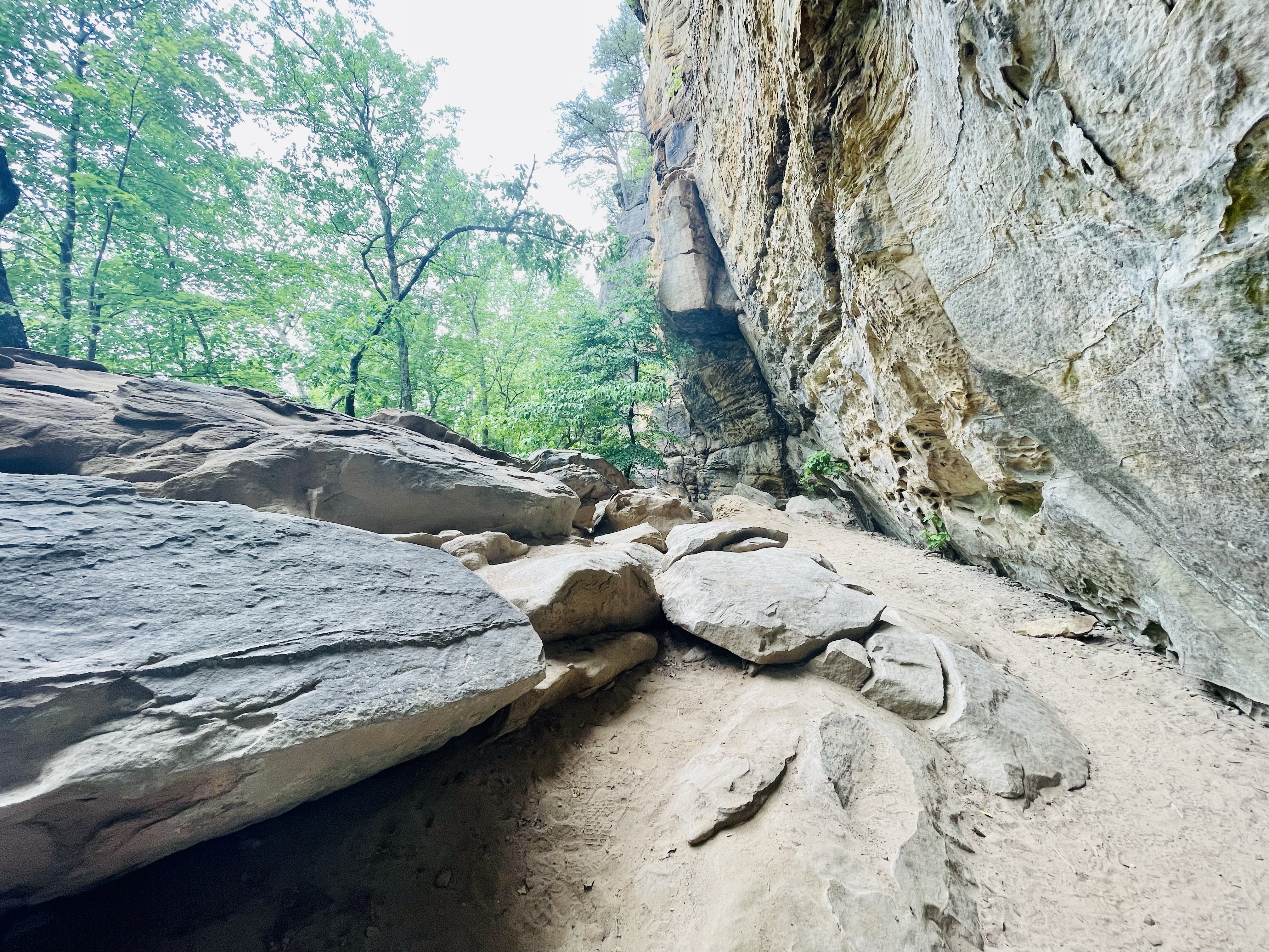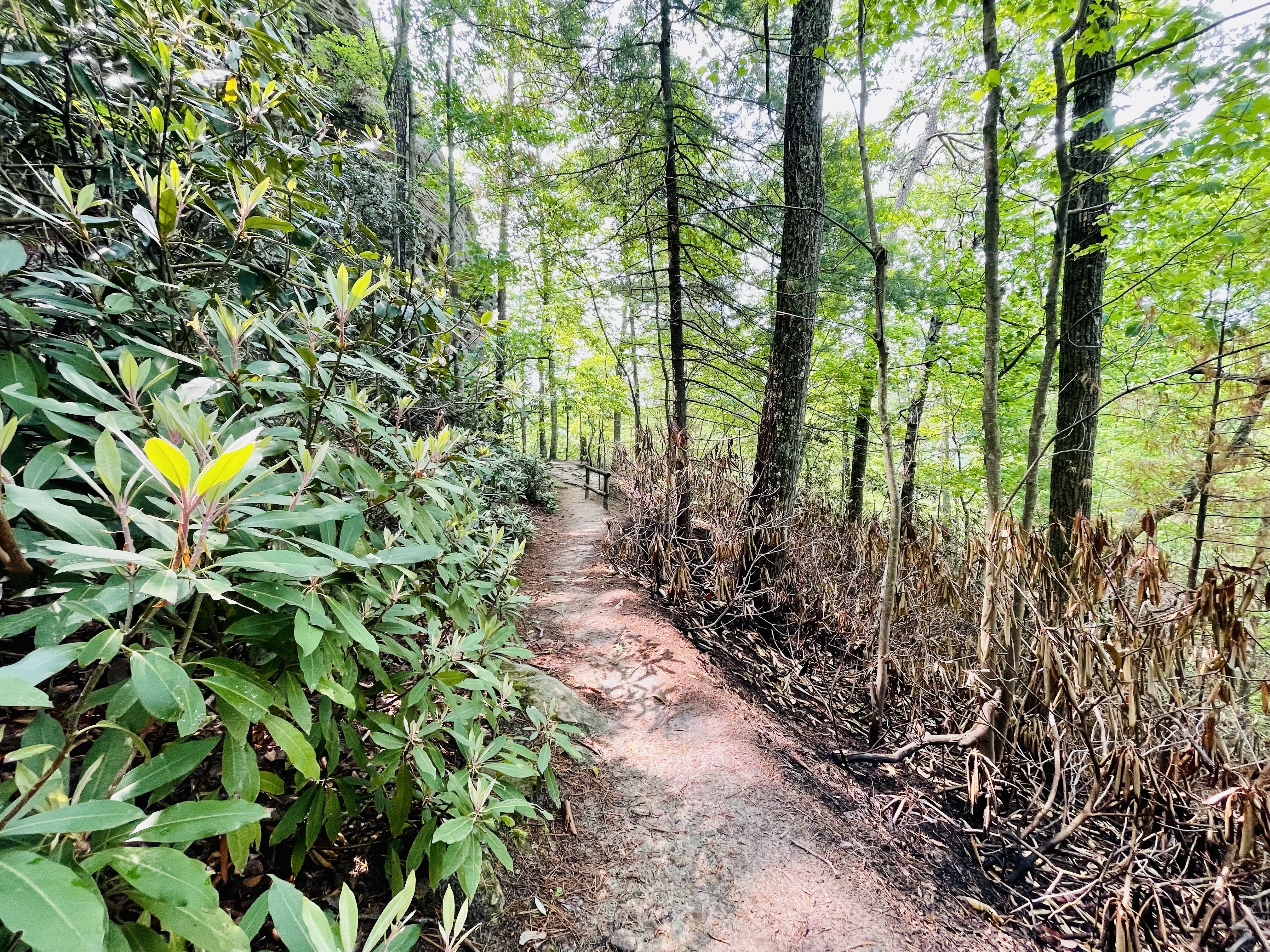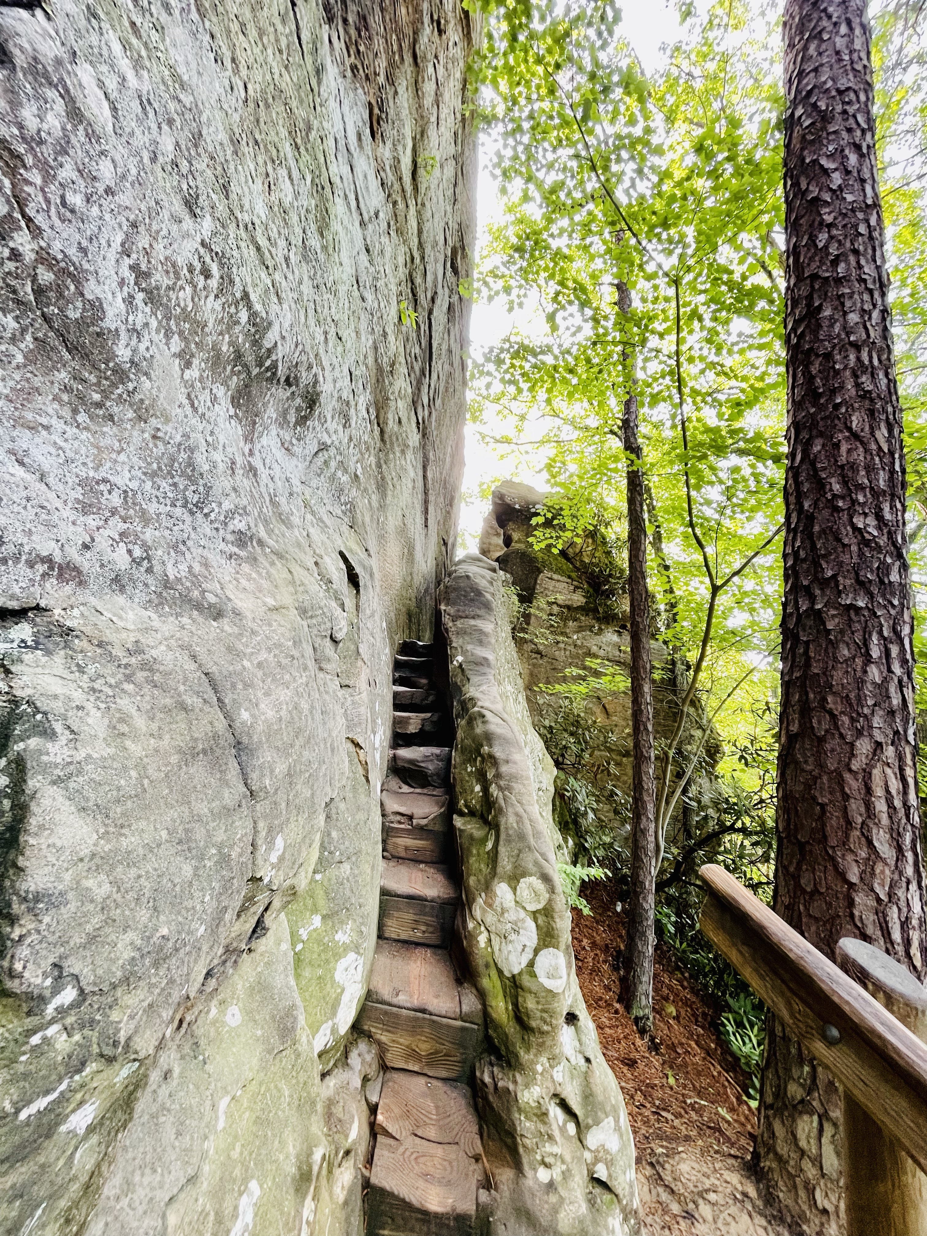 Once at the top, we re-traced our steps back over the Natural Bridge, but this time we headed down the Rock Garden Trail. I had read that this trail was packed with a ton of scenery and it was! The trail actually cuts underneath the Sky Lift and follows a bluff line.