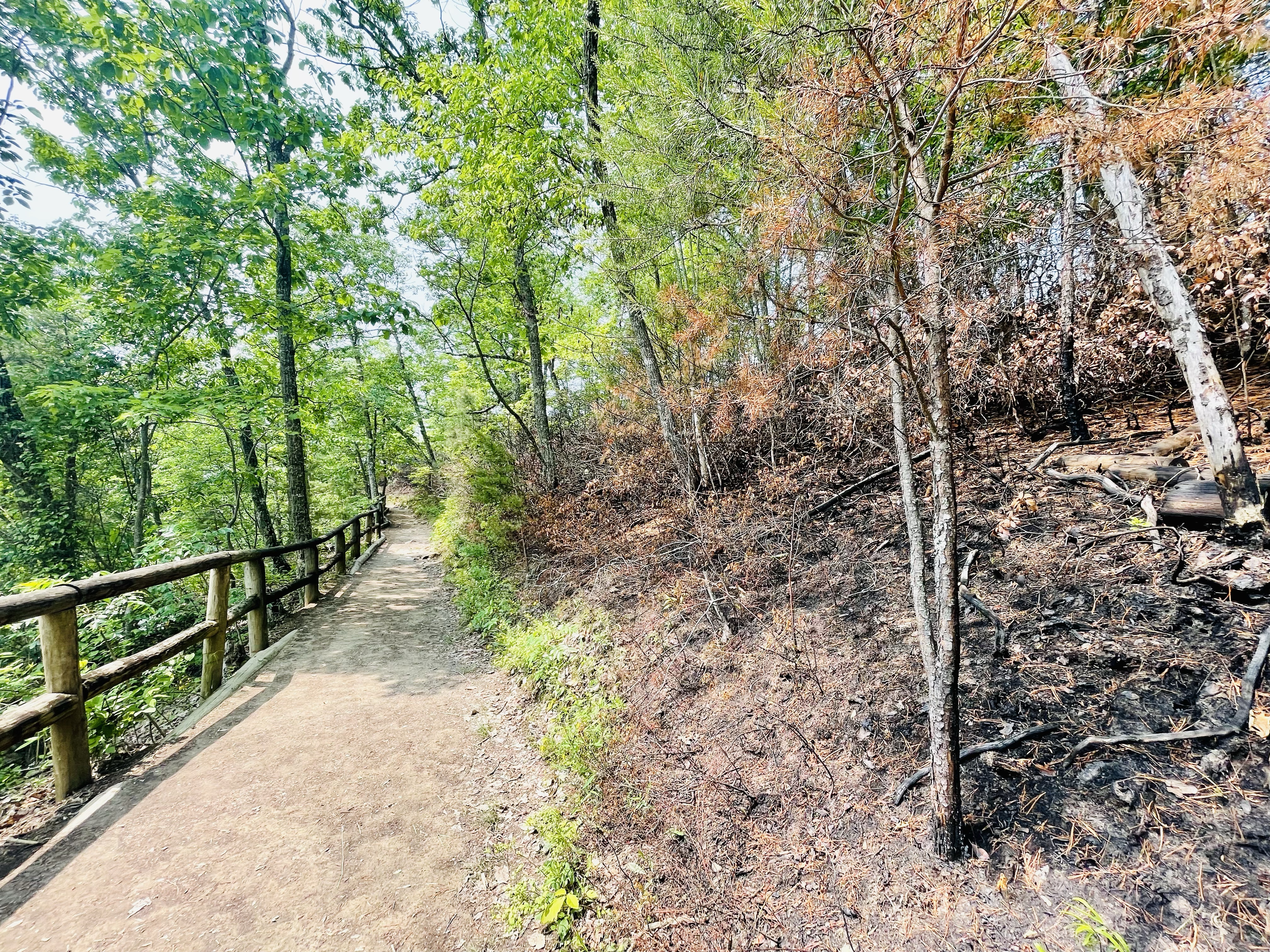 We bought a one way ticket to the top so that we could experience the Sky Lift. There had been a wild fire at the park just a couple weeks before we visited and as we rode the lift to the top, the burn line was visible.