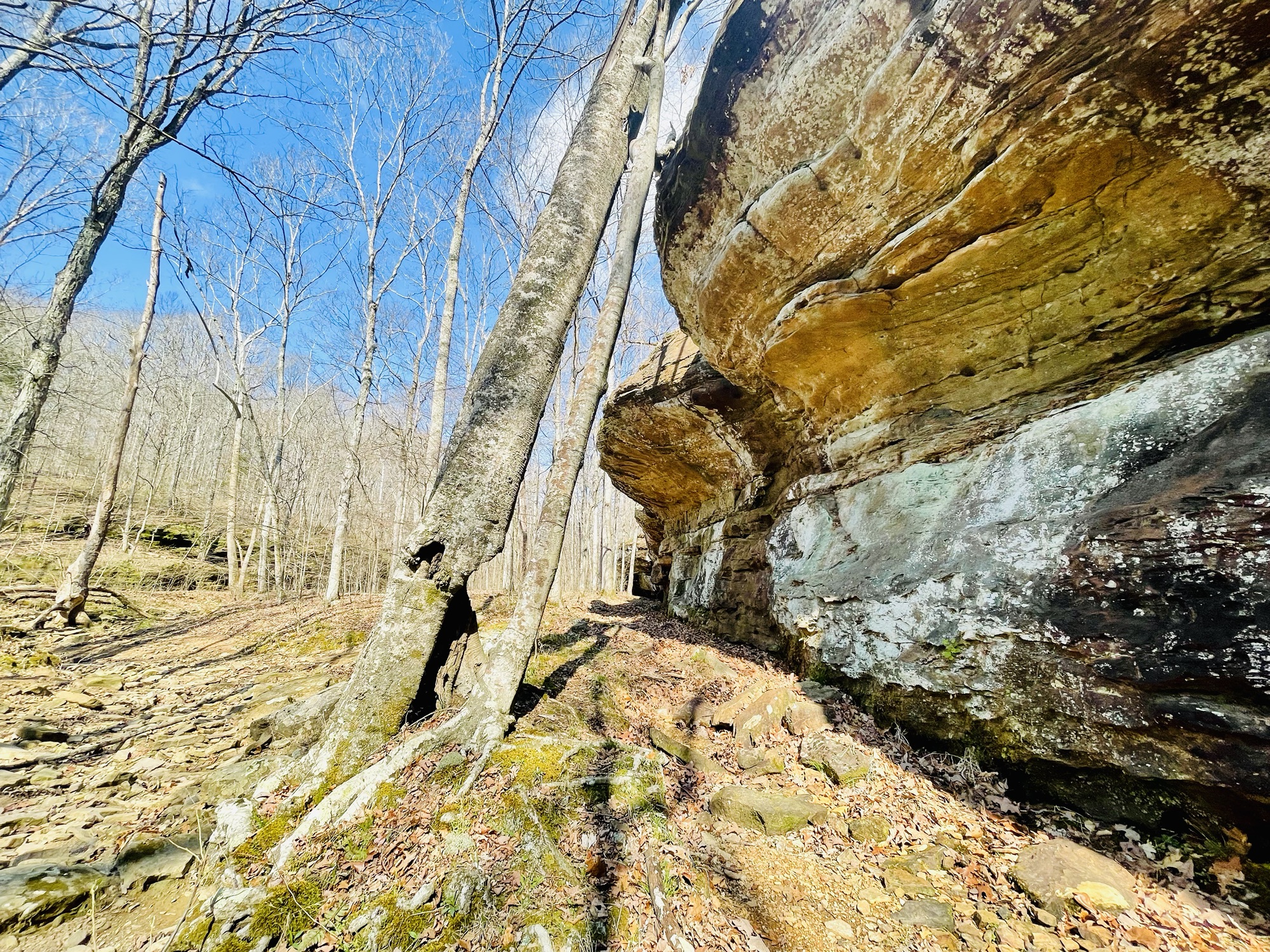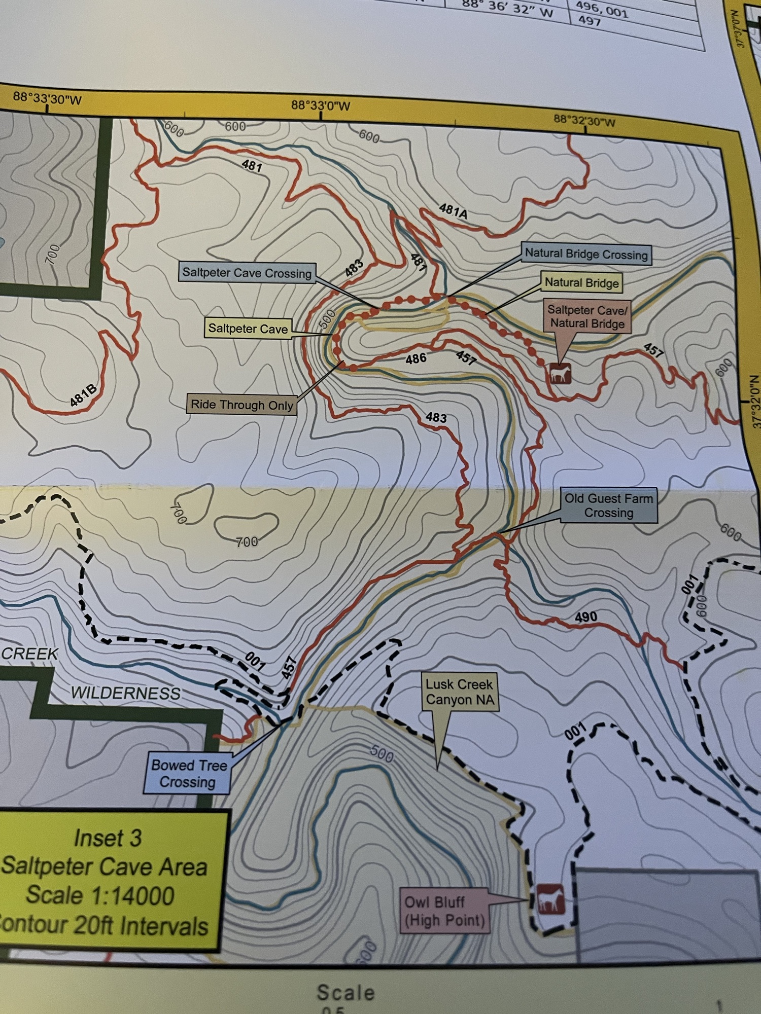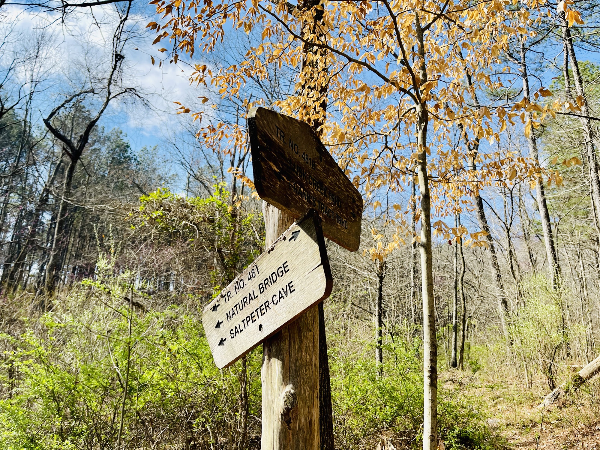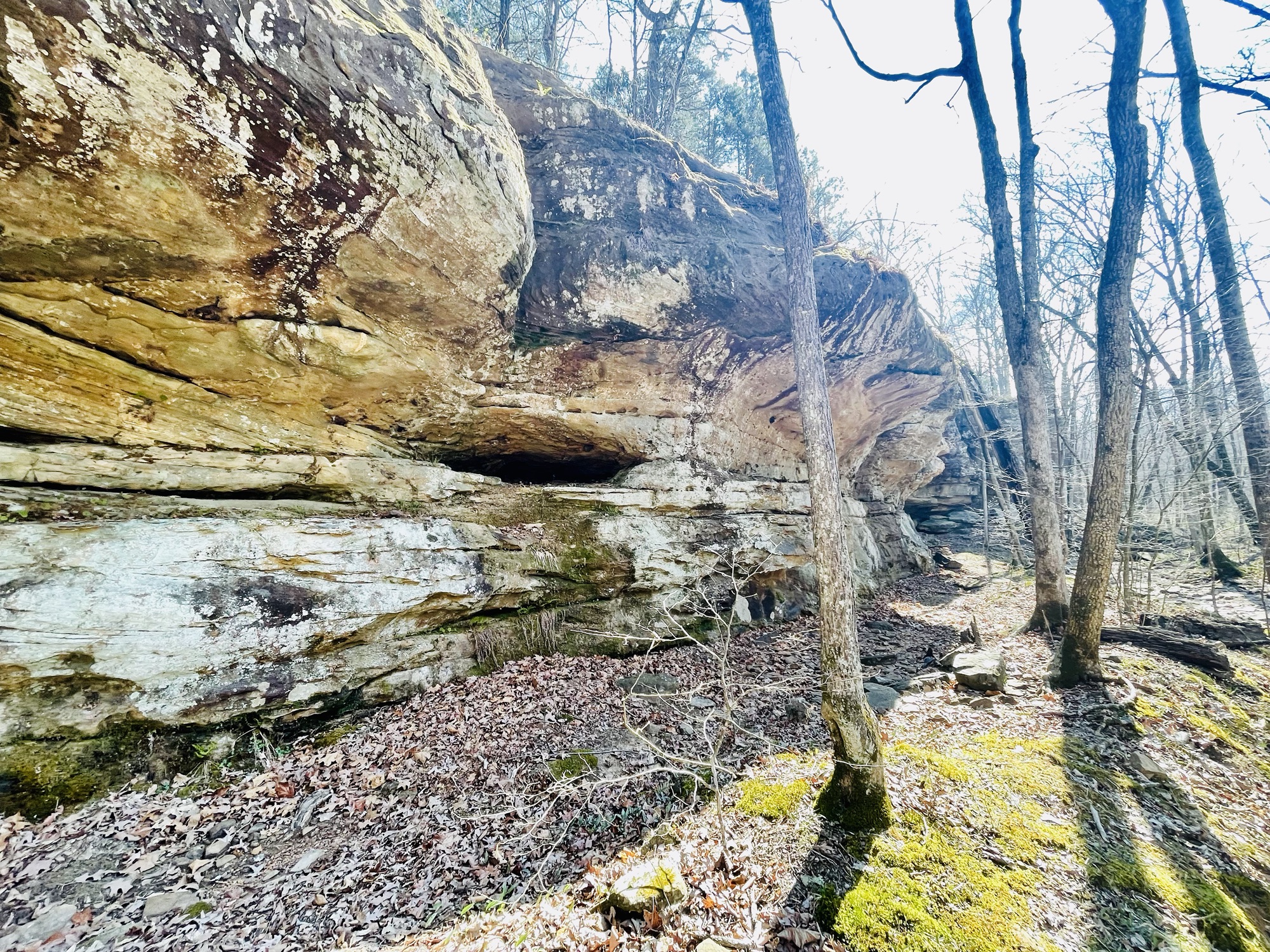 Before you get to Lusk creek, there is a rock shelter to the left. I guess we thought this was Saltpeter Cave, but looking at the map below, I don’t know that we ever saw Saltpeter Cave! LOL! The cave is to the west of the Natural Bridge Crossing over Lusk Creek, but we never went that way. If anyone reading this knows, let me know!