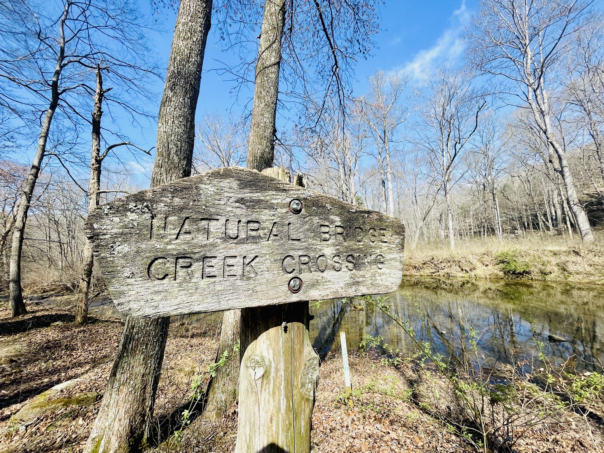 If the water is low enough, you can cross Lusk Creek and head to the Natural Bridge which we did! The Natural Bridge is pretty cool as you can duck beneath it and then come up on the backside of it and cross over the top.