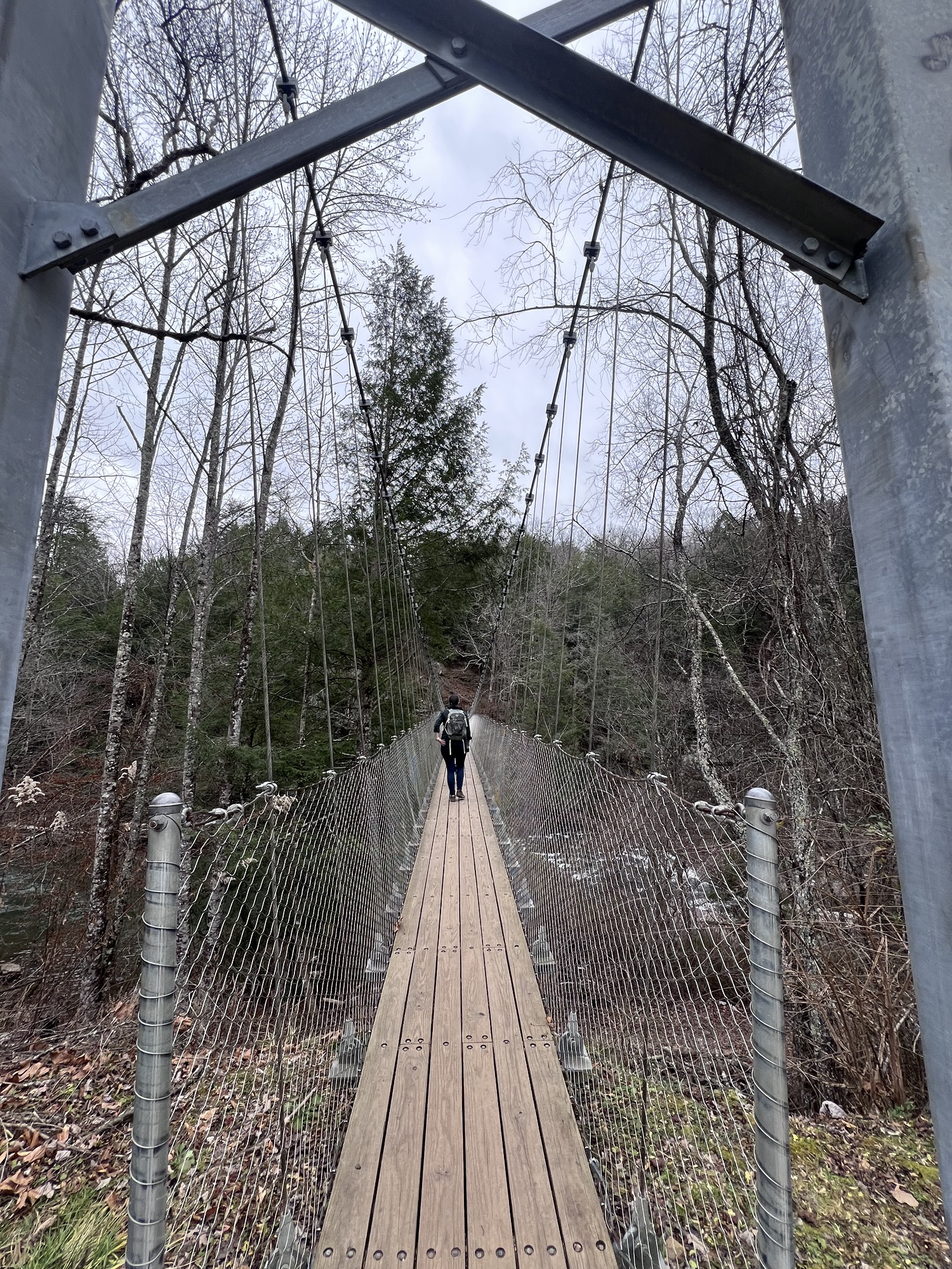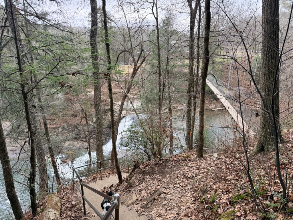 After making it back to the top we walked behind the Nature Center and crossed the suspension bridge that spans Cane Creek. Previously when I had been here, the bridge had been closed. We made about a 1.5 mile loop by hiking the Overlook Trail and part of the Woodland Trail counterclockwise.