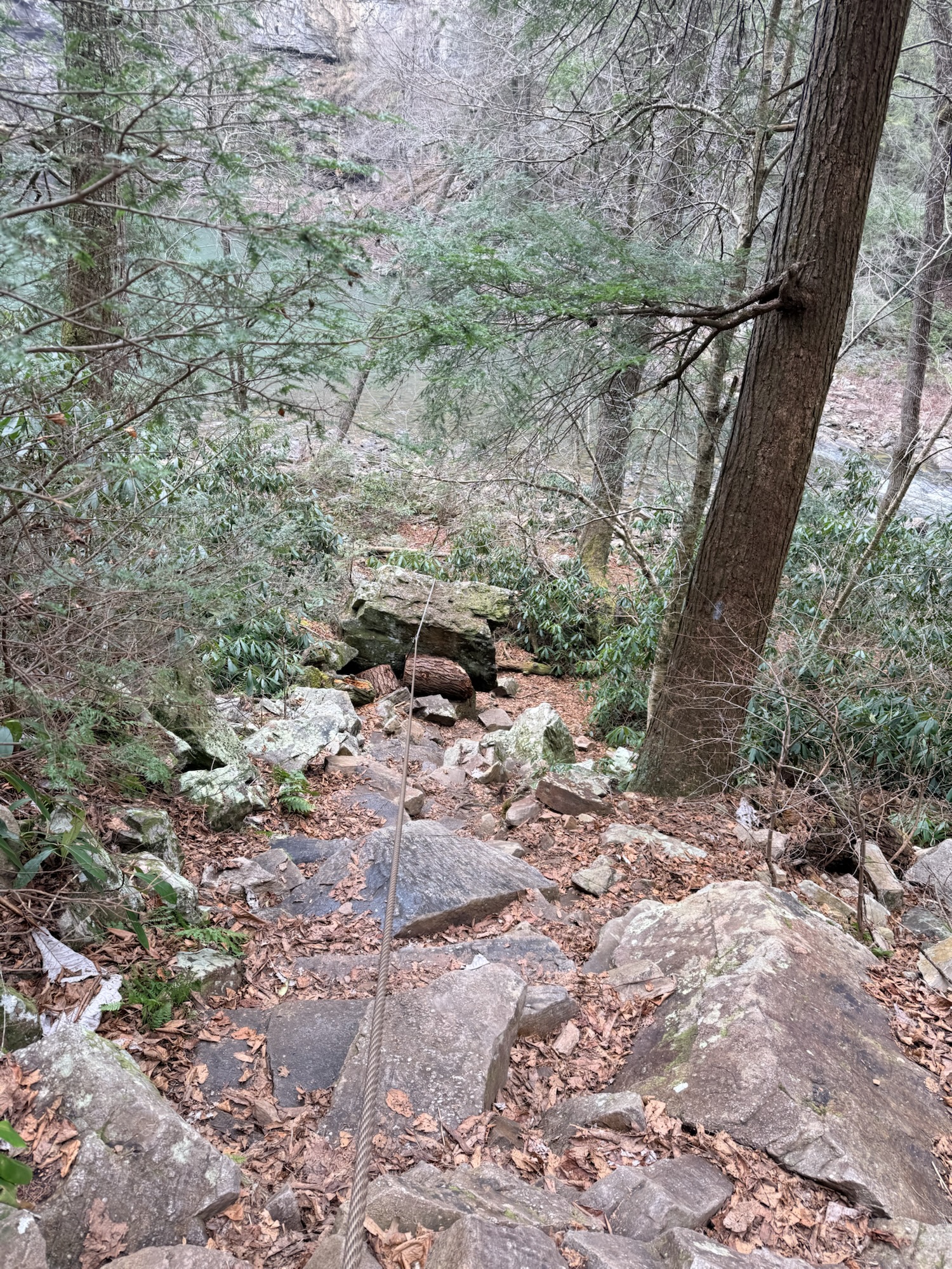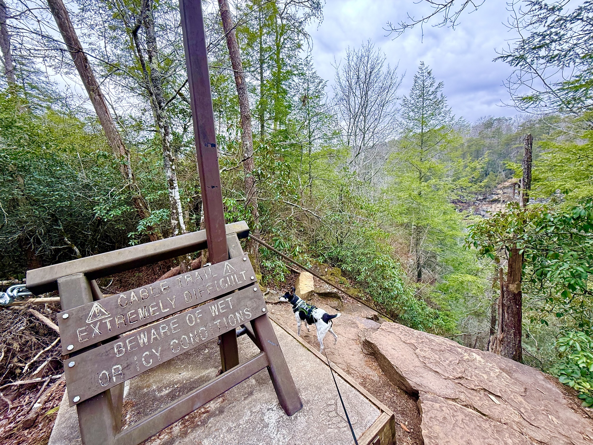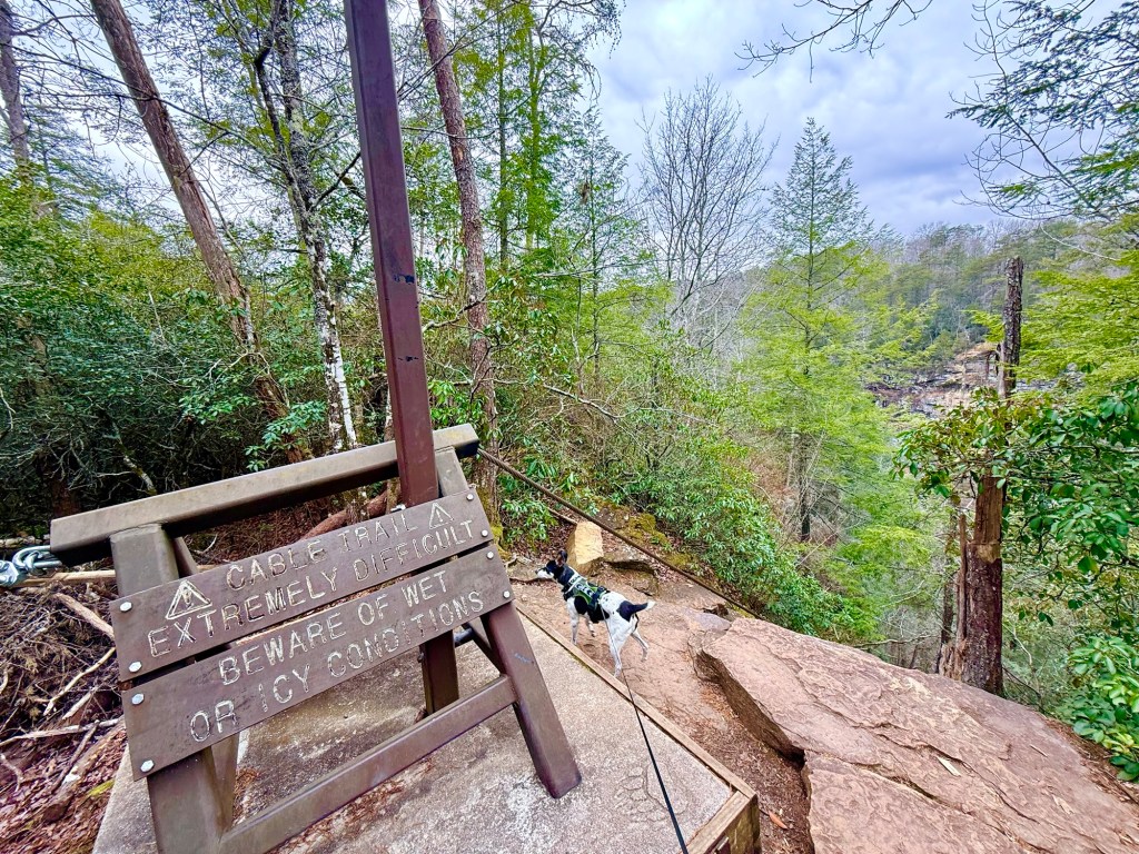 The Cable Trail is an extremely strenuous and rugged trail that is only .1 miles in length. What makes this trail so difficult is you basically have to scale the side of a cliff while holding onto a cable to guide you down. While this trail is very difficult, it is worth the reward at the end. Please use extreme caution if you choose to hike this trail.